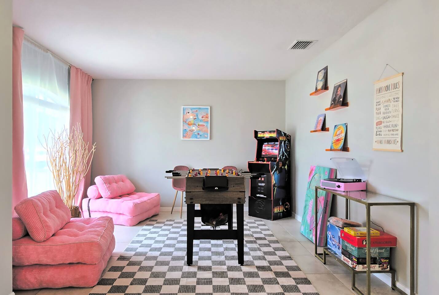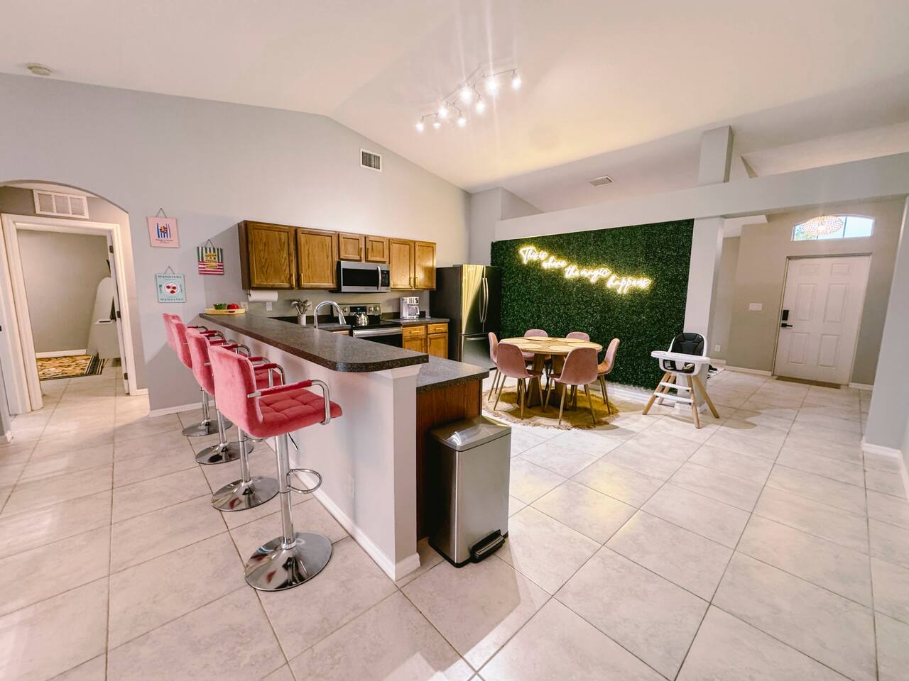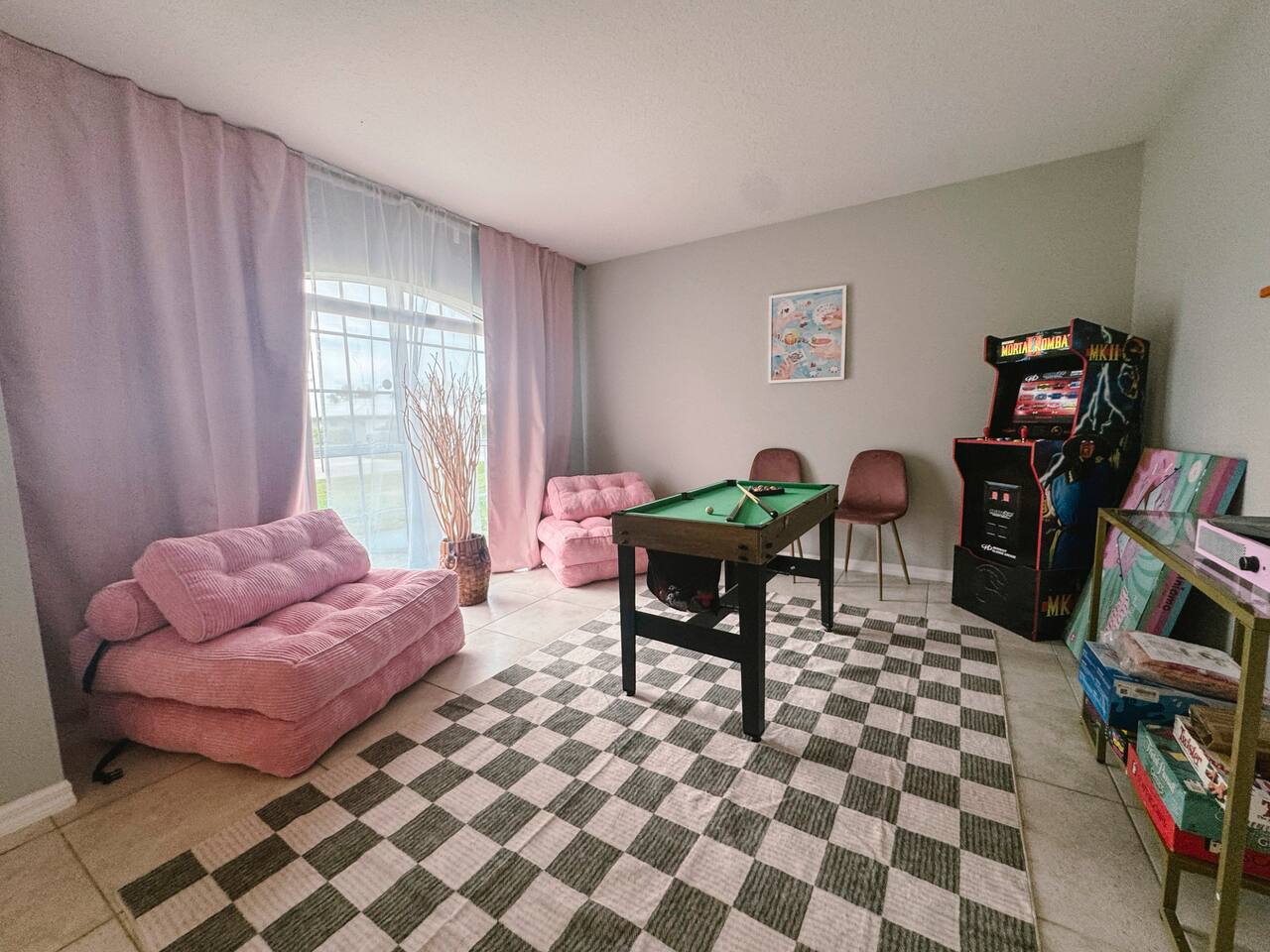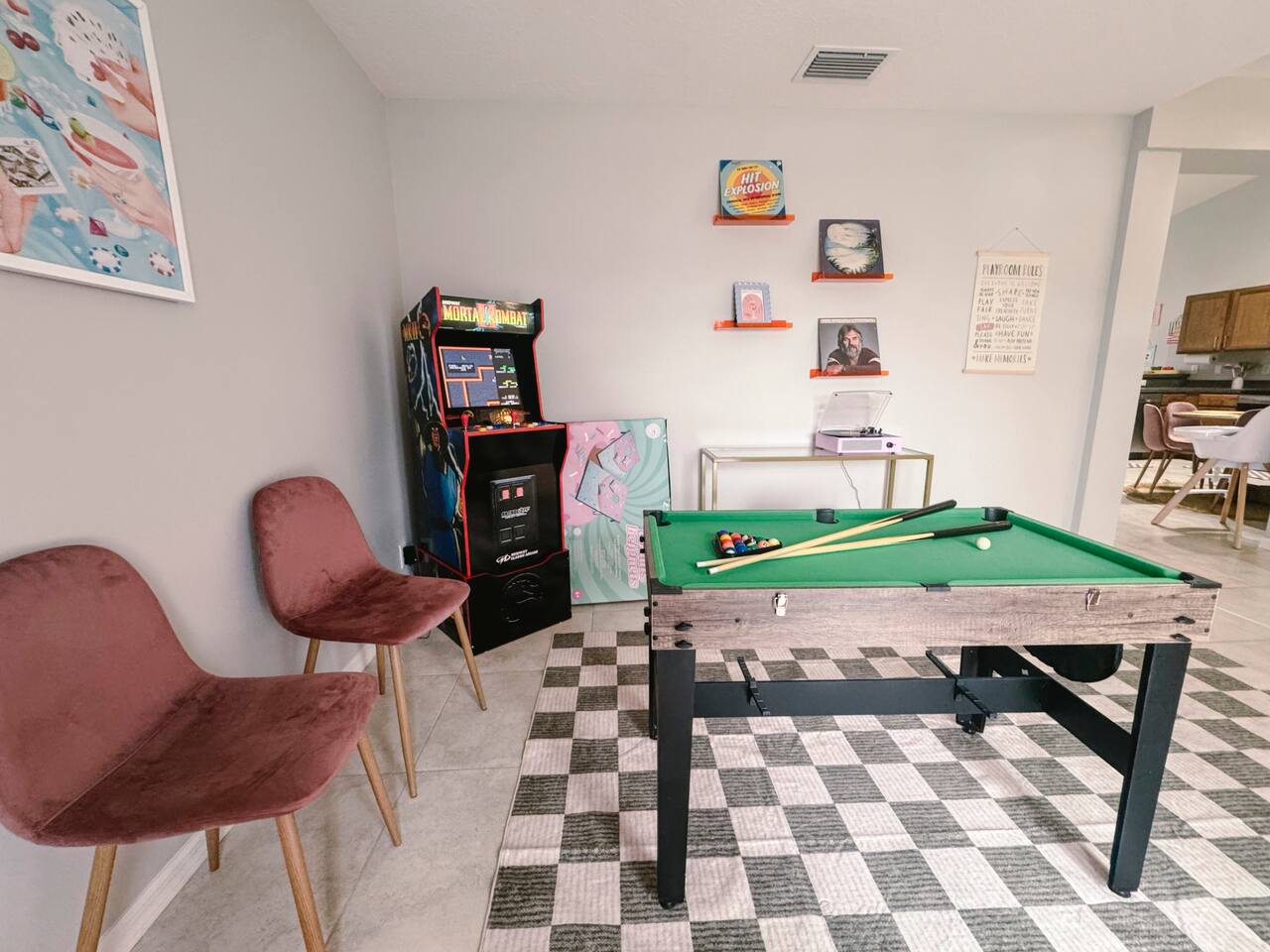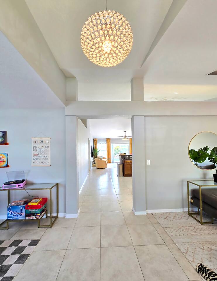 Welcome to your perfect family getaway in sunny Port St. Lucie! This spacious 4-bedroom, 2-bathroom home is packed with fun, comfort, and stylish decor that’s perfect for memorable vacation photos. Whether you're splashing in the private heated pool, playing games in the game room, or relaxing around the fire pit under the stars, this home has everything you need for a memorable stay. SLEEPING ARRANGEMENTS (Sleeps up to 14 comfortably): ✩ Master Bedroom: 1 King bed with ensuite bathroom and large smart TV ✩ 2nd Bedroom: 1 Queen bed with large smart TV ✩ 3rd Bedroom: 2 Full beds – ideal for teens or couples, with large smart TV ✩ 4th Bedroom: 1 Full bed + 1 Twin-over-Twin bunk bed – great for kids or larger families ✩ Den: 1 Full pull-out bed Designed with a split floor plan, the layout offers added privacy—perfect for multiple families or groups traveling together. The open living space is bright, inviting, and thoughtfully designed with modern touches and chic finishes. The fully stocked kitchen includes bar seating and a dining area where everyone can gather for meals or game nights. Step outside to your private backyard oasis—a perfect spot to unwind or snap a few vacation pics. Lounge by the heated pool, fire up the BBQ grill, or enjoy s’mores by the fire pit. Inside, the game room delivers hours of entertainment and fun. It features: ✩ Foosball ✩ Air hockey ✩ Pocket pool (tabletop billiards) ✩ Mortal Kombat arcade machine ✩ A selection of board games ✩ A vinyl record player for a nostalgic touch Additional amenities include: ✩ High-speed Wi-Fi ✩ Washer/dryer ✩ Central AC ✩ Free driveway parking Located in a quiet neighborhood just minutes from beaches, golf courses, shopping, and restaurants, this home is your ideal home base for everything Port St. Lucie has to offer. Book your stay today and make lasting memories with the people you love—complete with beautiful backdrops for your favorite moments! ☆☆☆ GUEST RENTAL AGREEMENT, SECURITY DEPOSIT, & ID VERIFICATION REQUIRED ☆☆☆ All guests must complete a Guest Rental Agreement, ID verification, and Security Deposit in order to receive Arrival Instructions. Details of the Guest Rental Agreement can be found in the House Rules. Guests will have the option of a refundable credit card hold or a non-refundable $50 guest insurance. Other things to note STARTER KIT The home will be prepared for your comfort and enjoyment upon your arrival. As is customary for vacation rentals, and as a courtesy to you, we will provide these items to get your trip off to a comfortable start; however, any additional supplies will be your responsibility. • 2 Toilet paper per bathroom • 1 Small shampoo/conditioner per bathroom • 1 Soap per bathroom • 1 Hand soap per bathroom • 2 Trash bags • 1 Dish soap • 1 Sponge • 3 Dishwasher pods • 1 Paper towel • Coffee • Sugar • 3 Laundry Pods *A Navastay Vacation Rental Property*