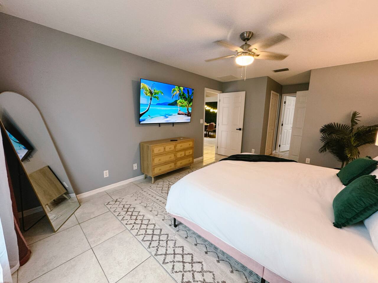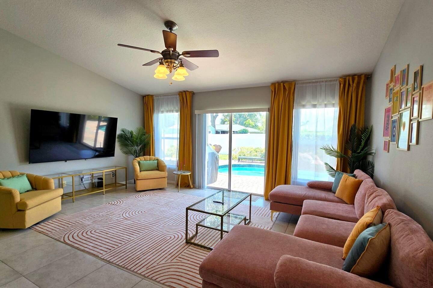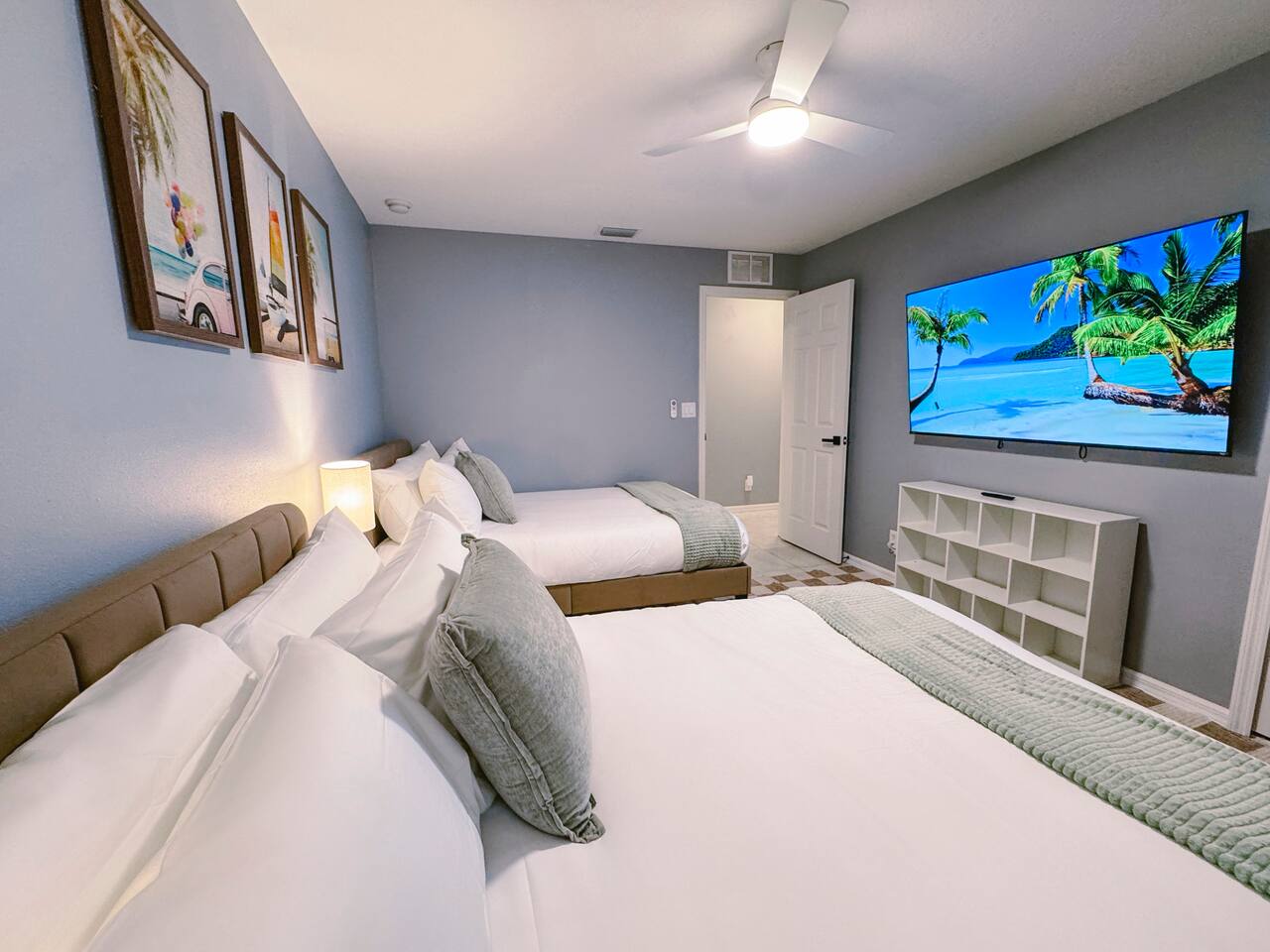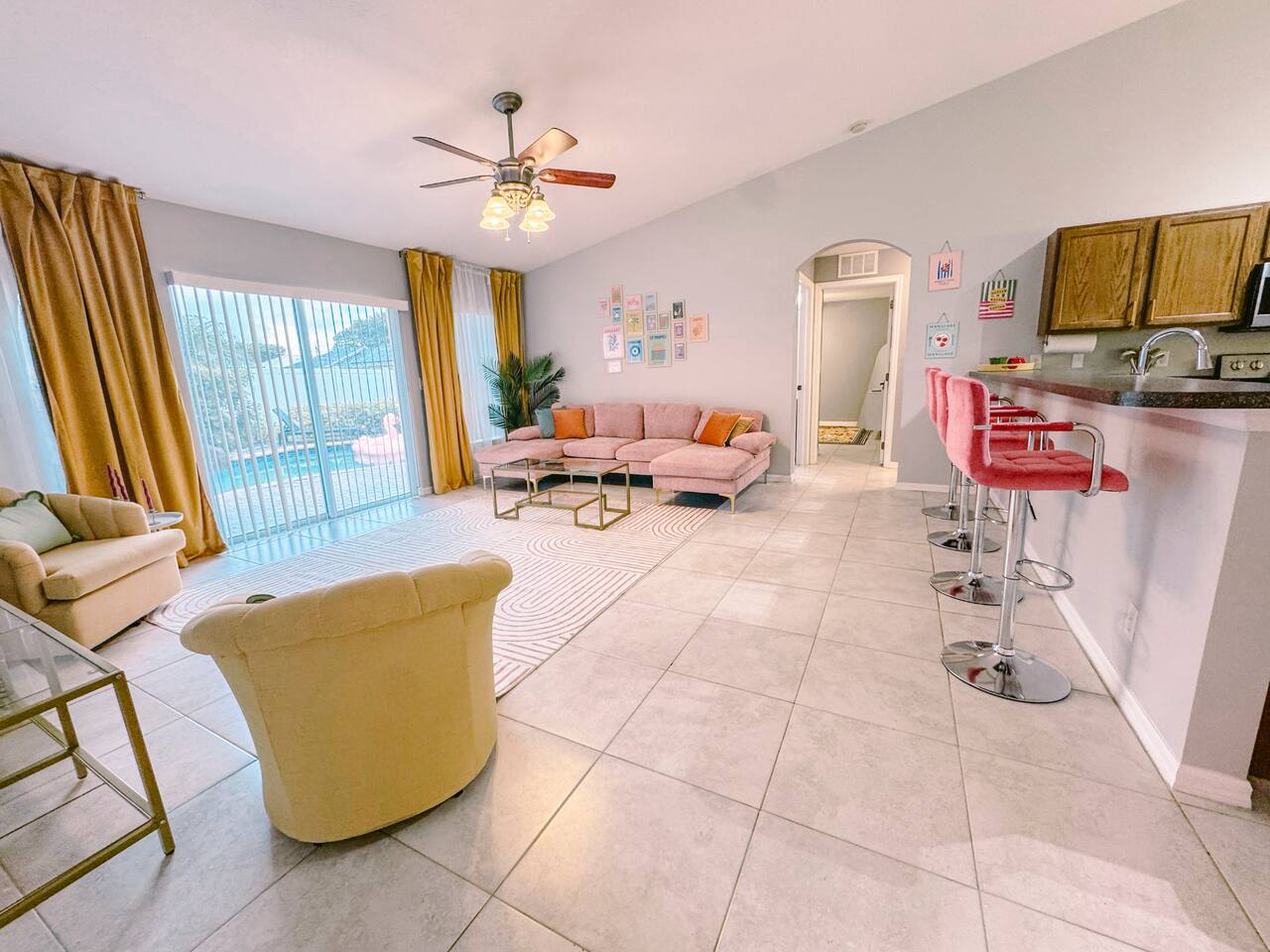 Welcome to your perfect family getaway in sunny Port St. Lucie! This spacious 4-bedroom, 2-bathroom home is packed with fun, comfort, and stylish decor that’s perfect for memorable vacation photos. Whether you're splashing in the private heated pool, playing games in the game room, or relaxing around the fire pit under the stars, this home has everything you need for a memorable stay. SLEEPING ARRANGEMENTS (Sleeps up to 14 comfortably): ✩ Master Bedroom: 1 King bed with ensuite bathroom and large smart TV ✩ 2nd Bedroom: 1 Queen bed with large smart TV ✩ 3rd Bedroom: 2 Full beds – ideal for teens or couples, with large smart TV ✩ 4th Bedroom: 1 Full bed + 1 Twin-over-Twin bunk bed – great for kids or larger families ✩ Den: 1 Full pull-out bed Designed with a split floor plan, the layout offers added privacy—perfect for multiple families or groups traveling together. The open living space is bright, inviting, and thoughtfully designed with modern touches and chic finishes. The fully stocked kitchen includes bar seating and a dining area where everyone can gather for meals or game nights. Step outside to your private backyard oasis—a perfect spot to unwind or snap a few vacation pics. Lounge by the heated pool, fire up the BBQ grill, or enjoy s’mores by the fire pit. Inside, the game room delivers hours of entertainment and fun. It features: ✩ Foosball ✩ Air hockey ✩ Pocket pool (tabletop billiards) ✩ Mortal Kombat arcade machine ✩ A selection of board games ✩ A vinyl record player for a nostalgic touch Additional amenities include: ✩ High-speed Wi-Fi ✩ Washer/dryer ✩ Central AC ✩ Free driveway parking Located in a quiet neighborhood just minutes from beaches, golf courses, shopping, and restaurants, this home is your ideal home base for everything Port St. Lucie has to offer. Book your stay today and make lasting memories with the people you love—complete with beautiful backdrops for your favorite moments! ☆☆☆ GUEST RENTAL AGREEMENT, SECURITY DEPOSIT, & ID VERIFICATION REQUIRED ☆☆☆ All guests must complete a Guest Rental Agreement, ID verification, and Security Deposit in order to receive Arrival Instructions. Details of the Guest Rental Agreement can be found in the House Rules. Guests will have the option of a refundable credit card hold or a non-refundable $50 guest insurance. Other things to note STARTER KIT The home will be prepared for your comfort and enjoyment upon your arrival. As is customary for vacation rentals, and as a courtesy to you, we will provide these items to get your trip off to a comfortable start; however, any additional supplies will be your responsibility. • 2 Toilet paper per bathroom • 1 Small shampoo/conditioner per bathroom • 1 Soap per bathroom • 1 Hand soap per bathroom • 2 Trash bags • 1 Dish soap • 1 Sponge • 3 Dishwasher pods • 1 Paper towel • Coffee • Sugar • 3 Laundry Pods *A Navastay Vacation Rental Property*
