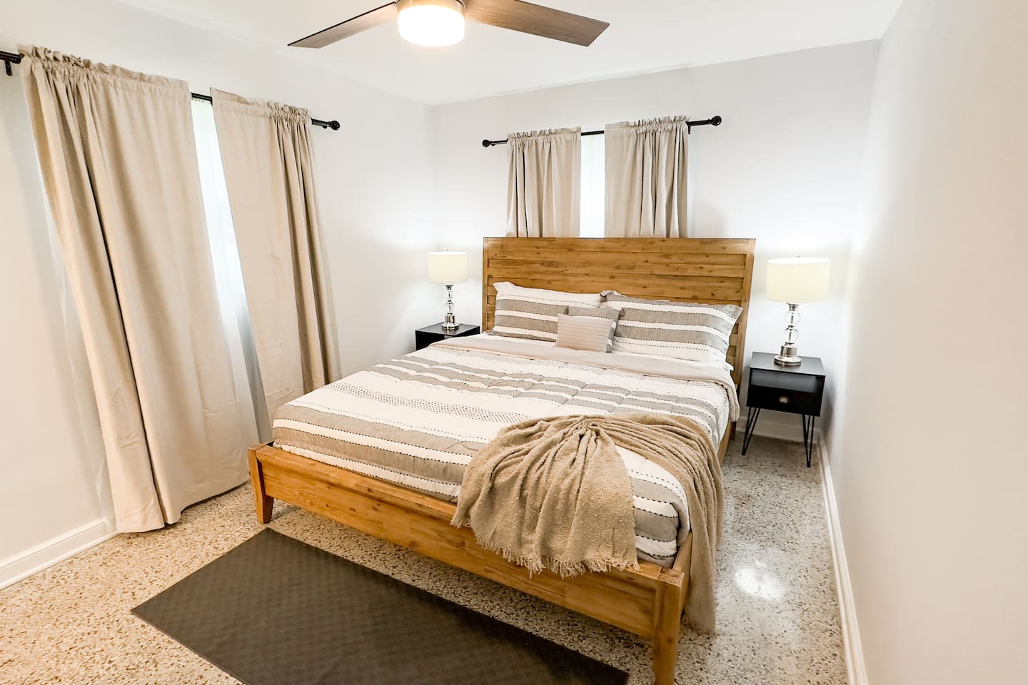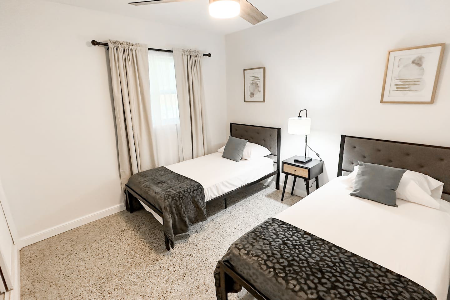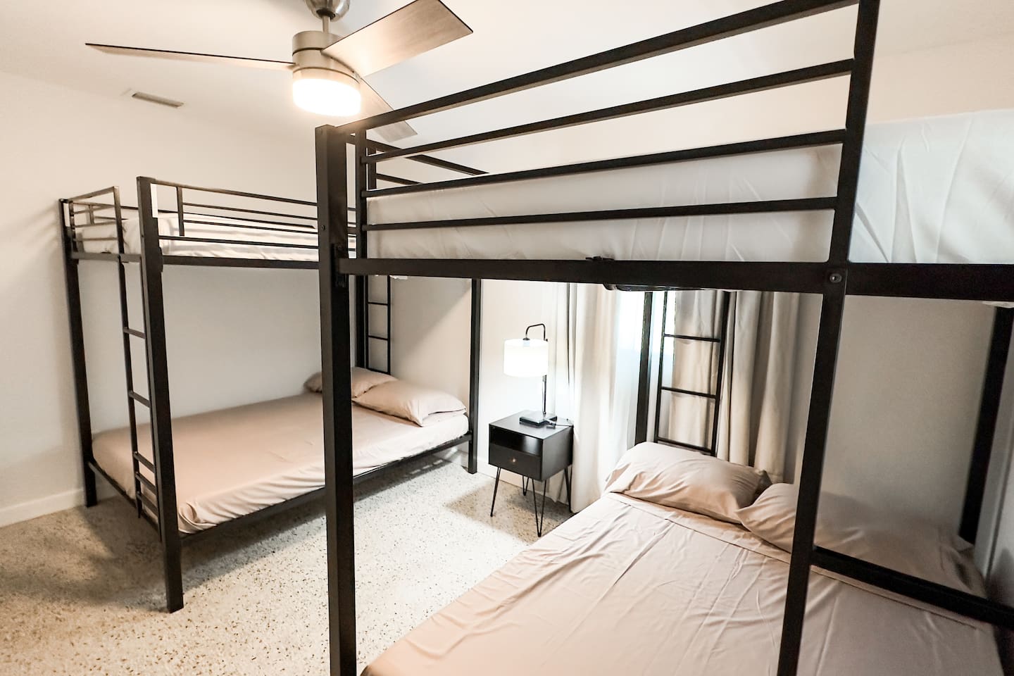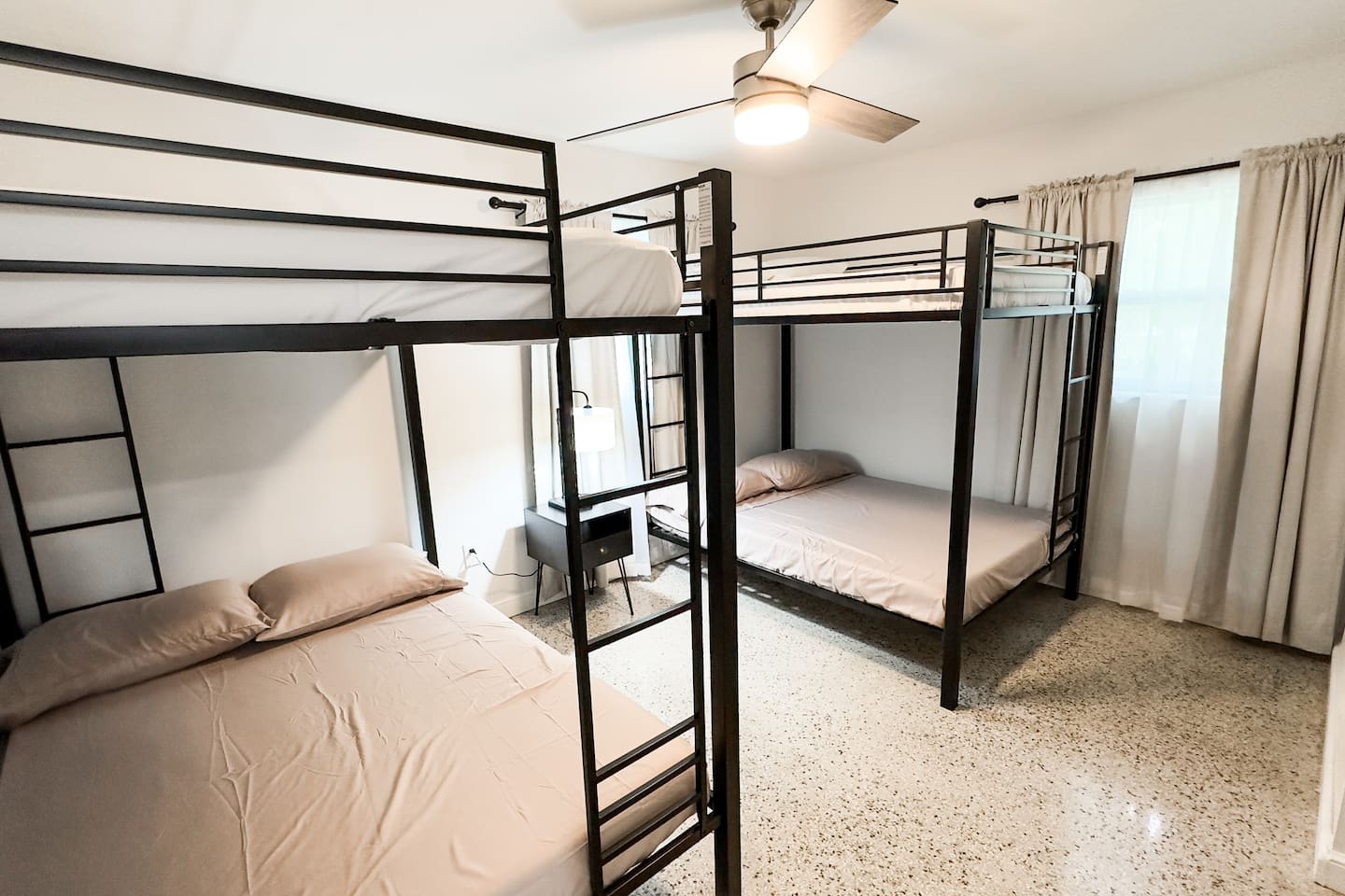 Looking for a modern and stylish vacation rental that's close to all the action in Fort Pierce? Look no further than this recently renovated 4-bedroom property! With its sleek and contemporary design, this home is perfect for travelers who want to relax in comfort and style. The property features four bedrooms, each of which is thoughtfully decorated with comfortable beds, plush linens, and plenty of natural light. Whether you're traveling with family or friends, there's plenty of space to spread out and enjoy your own private oasis. In addition to the bedrooms, the property also boasts a workspace that's perfect for remote workers or anyone who needs to get some work done during their stay. And when it's time to unwind, head outside to the spacious backyard, where you'll find a fire pit and plenty of outdoor seating. Located just a short distance from downtown Fort Pierce, this vacation rental is ideally situated for exploring all that this vibrant city has to offer. From the charming shops and restaurants to the beautiful beaches and outdoor activities, there's something for everyone here. Book your stay today and experience the best of Fort Pierce in style and comfort! Sleeping Arrangements: Bedroom 1: One king bed Bedroom 2: One queen bed Bedroom 3: Two twin beds Bedroom 4: Two full over full bunk beds GUEST RENTAL AGREEMENT, SECURITY DEPOSIT, & ID VERIFICATION REQUIRED All guests must complete a Guest Rental Agreement, ID verification, and Security Deposit in order to receive Arrival Instructions. Details of the Guest Rental Agreement can be found in the House Rules.