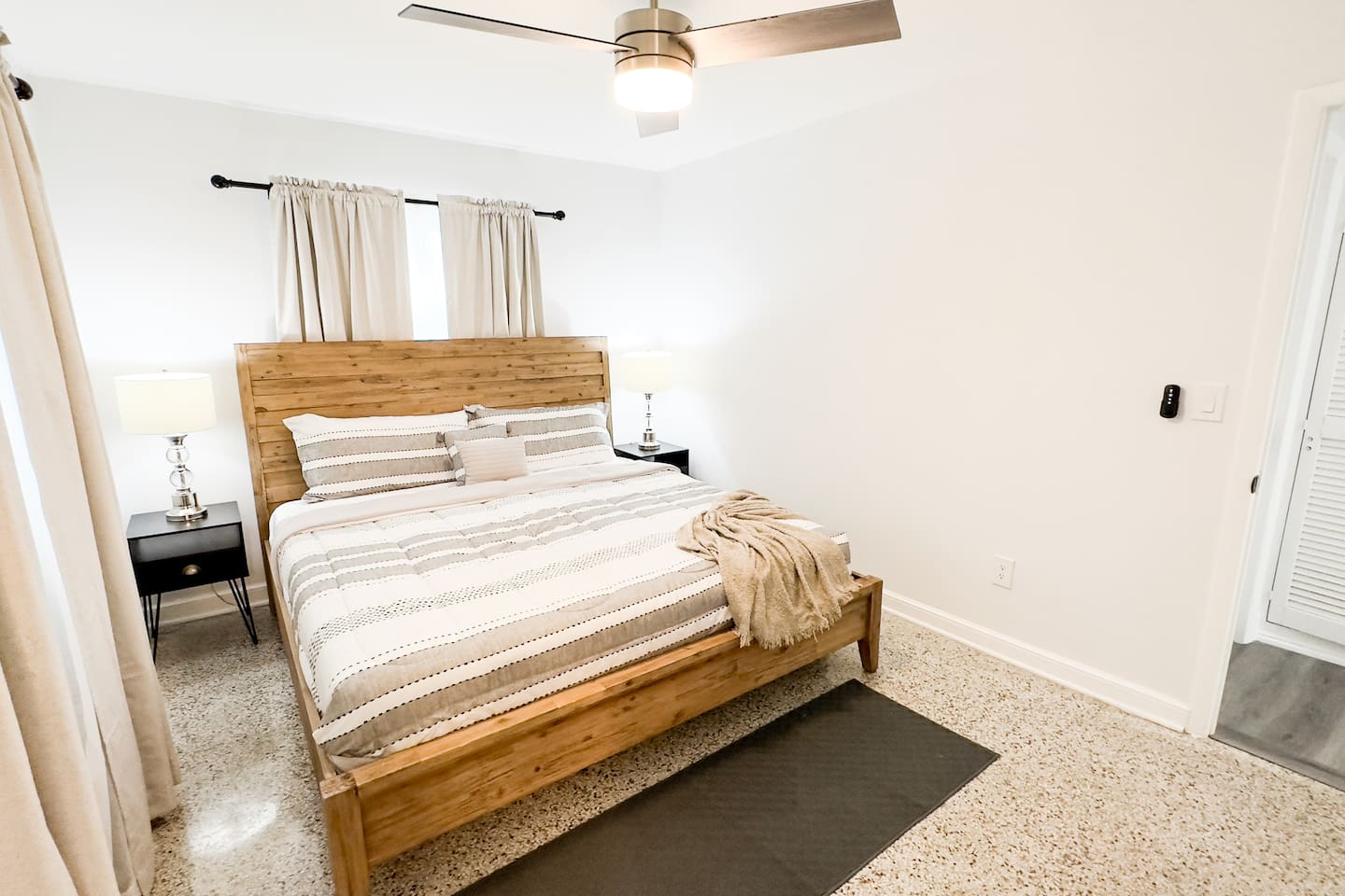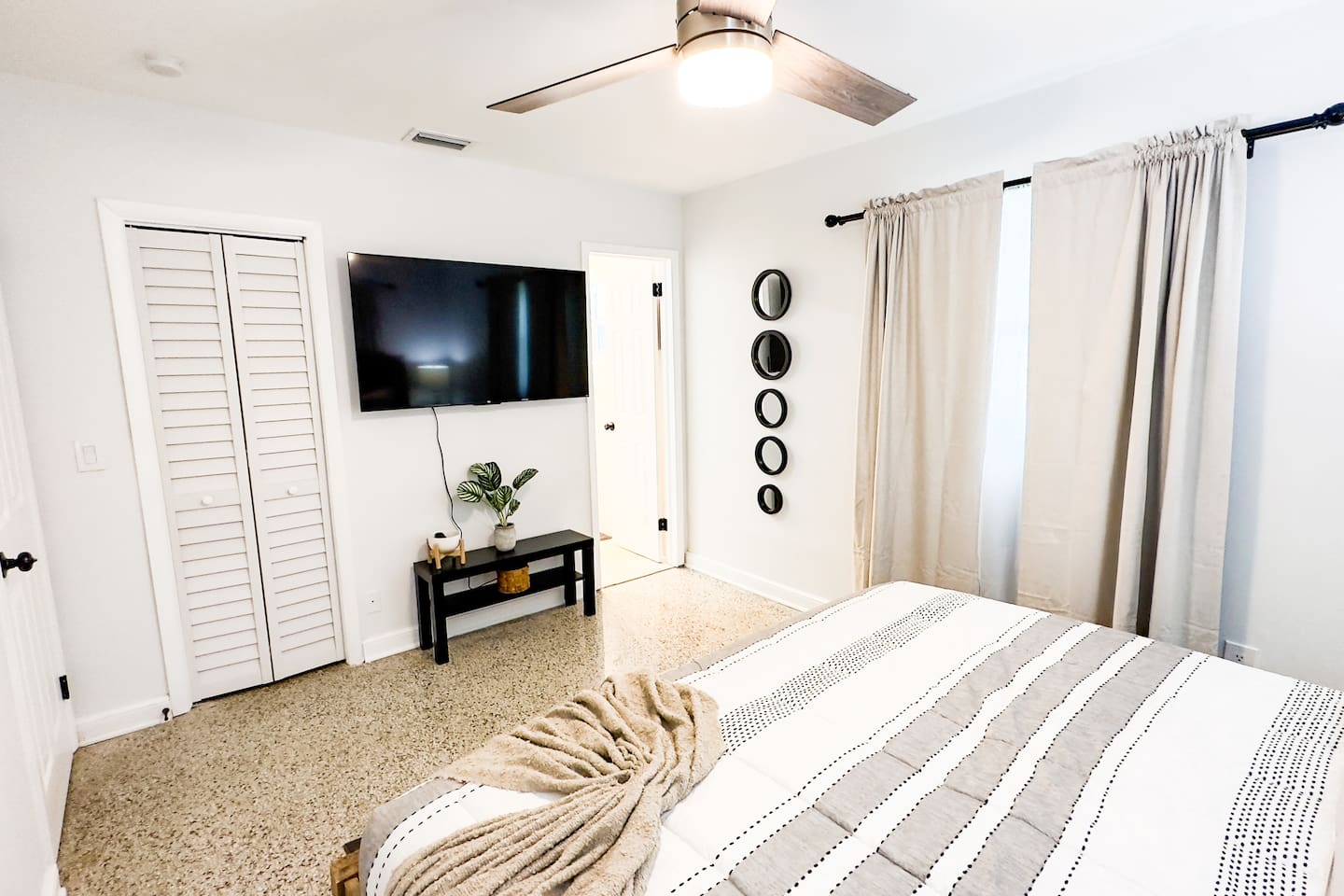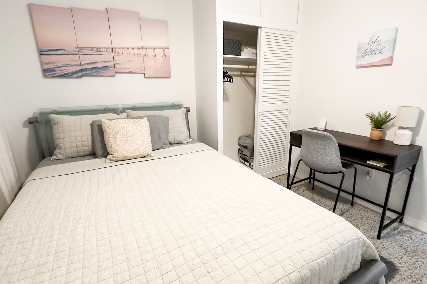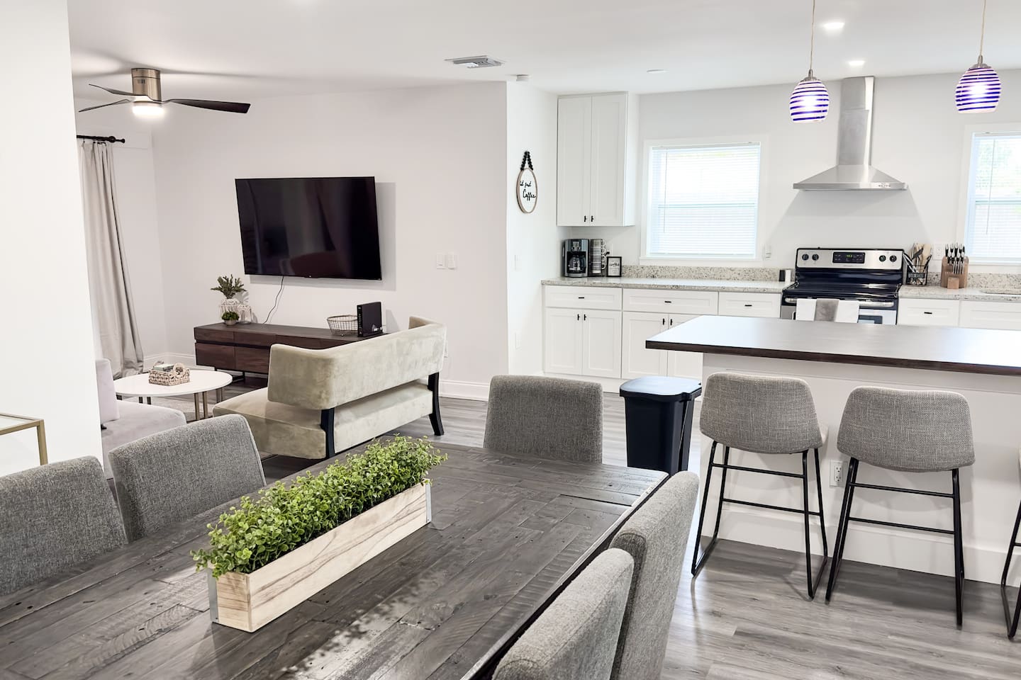 Looking for a modern and stylish vacation rental that's close to all the action in Fort Pierce? Look no further than this recently renovated 4-bedroom property! With its sleek and contemporary design, this home is perfect for travelers who want to relax in comfort and style. The property features four bedrooms, each of which is thoughtfully decorated with comfortable beds, plush linens, and plenty of natural light. Whether you're traveling with family or friends, there's plenty of space to spread out and enjoy your own private oasis. In addition to the bedrooms, the property also boasts a workspace that's perfect for remote workers or anyone who needs to get some work done during their stay. And when it's time to unwind, head outside to the spacious backyard, where you'll find a fire pit and plenty of outdoor seating. Located just a short distance from downtown Fort Pierce, this vacation rental is ideally situated for exploring all that this vibrant city has to offer. From the charming shops and restaurants to the beautiful beaches and outdoor activities, there's something for everyone here. Book your stay today and experience the best of Fort Pierce in style and comfort! Sleeping Arrangements: Bedroom 1: One king bed Bedroom 2: One queen bed Bedroom 3: Two twin beds Bedroom 4: Two full over full bunk beds GUEST RENTAL AGREEMENT, SECURITY DEPOSIT, & ID VERIFICATION REQUIRED All guests must complete a Guest Rental Agreement, ID verification, and Security Deposit in order to receive Arrival Instructions. Details of the Guest Rental Agreement can be found in the House Rules.