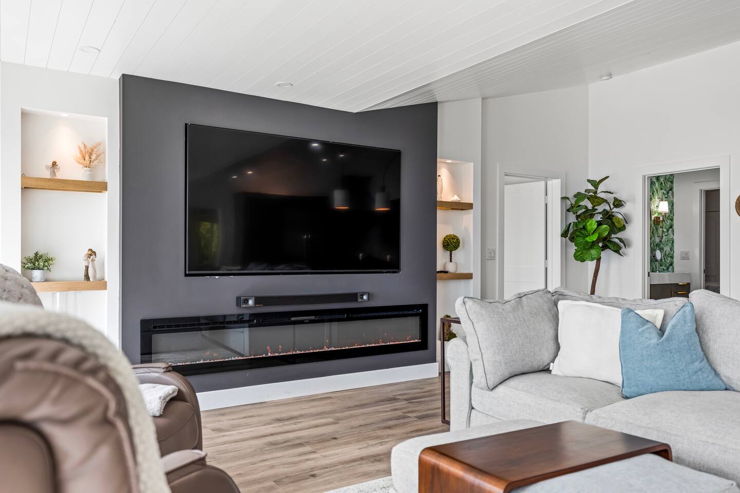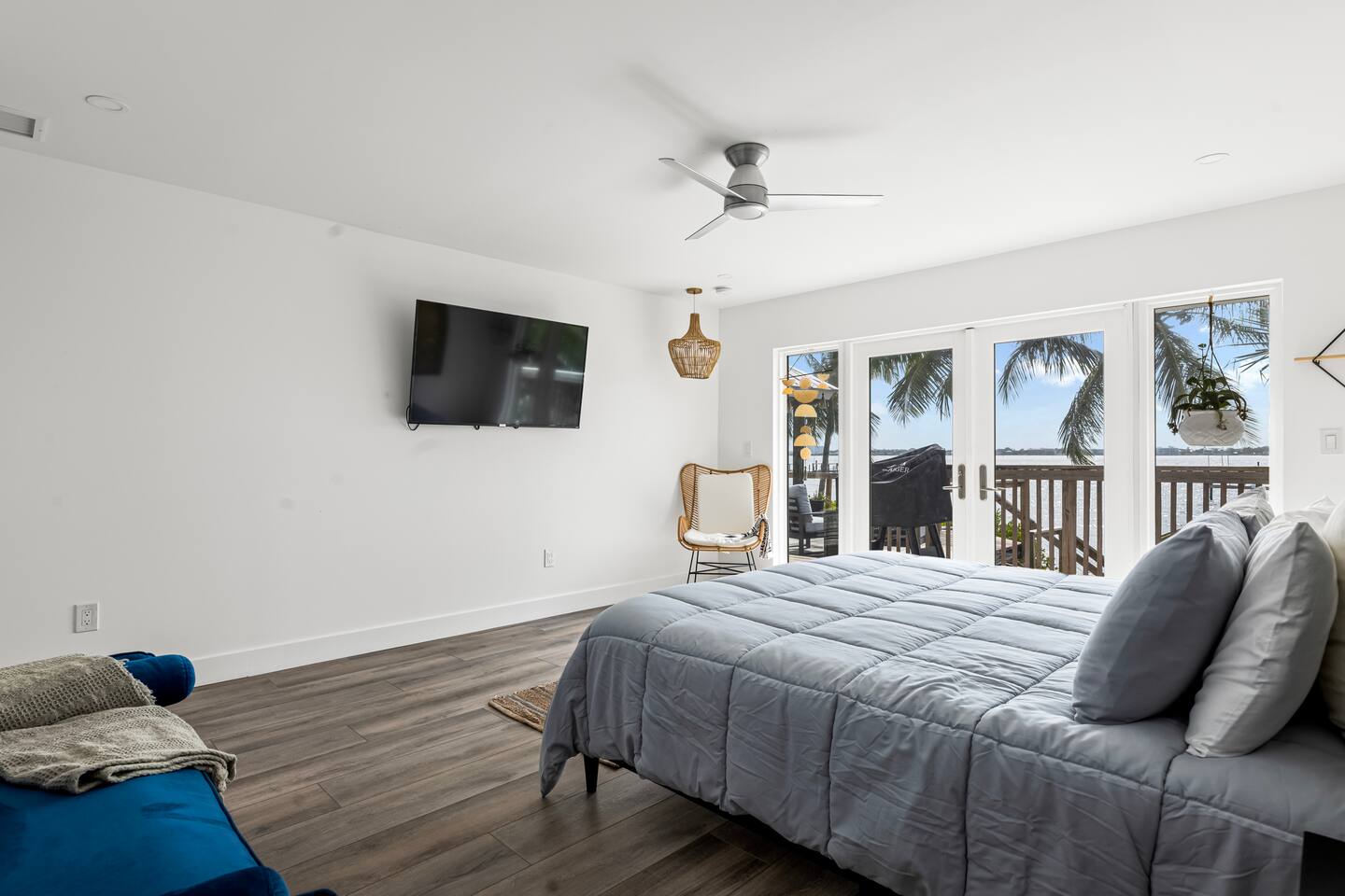 Welcome to our stunning waterfront retreat! This luxurious, modern dockside home offers the ultimate vacation experience. The Master bedroom features a king size bed, a TV, french doors leading to the patio area and a view of the river. Large ensuite with double sinks and a makeup vanity with lighted mirror. HUGE shower with handheld, 2 standard shower heads, and a rainfall shower head. Water closet with smart toilet, with auto flush and bidet. Large walk in closet located in the ensuite. Bedroom two features a king size bed, a TV, french doors leading to the patio area and a view of the river. Large ensuite with soaking tub, stand in shower, and a large walk in closet. This bathroom features a smart extractor fan with bluetooth connectivity and night lights. Bedroom three features a queen bed and a reach in closet. It is connected with the half bathroom. Relax and unwind in the spacious living room featuring an 80-inch TV, perfect for movie nights or catching the big game. The chef’s kitchen is fully equipped with high-end appliances, perfect for preparing gourmet meals while enjoying breathtaking views of the water. For your convenience, the home includes a dedicated laundry room complete with a dog bathing station, making it a pet-friendly haven for you and your furry friends. Step outside to enjoy direct access to the water from your private dock, perfect for boating, fishing, or simply soaking in the serene surroundings. *Just a disclaimer that this property is located near train tracks and you may hear trains passing from time to time* We also have a kayak available for use on the property. Whether you’re here for a peaceful escape or an adventure-filled getaway, this home has it all. Book your stay today and indulge in the perfect blend of modern luxury and waterfront relaxation! Master Ensuite Bedroom 1 King Bed Second Ensuite Bedroom 1 King Bed Third Bedroom 1 Queen Bed GUEST RENTAL AGREEMENT, SECURITY DEPOSIT, & ID VERIFICATION REQUIRED All guests must complete a Guest Rental Agreement, ID verification, and Security Deposit in order to receive Arrival Instructions. Details of the Guest Rental Agreement can be found in the House Rules.