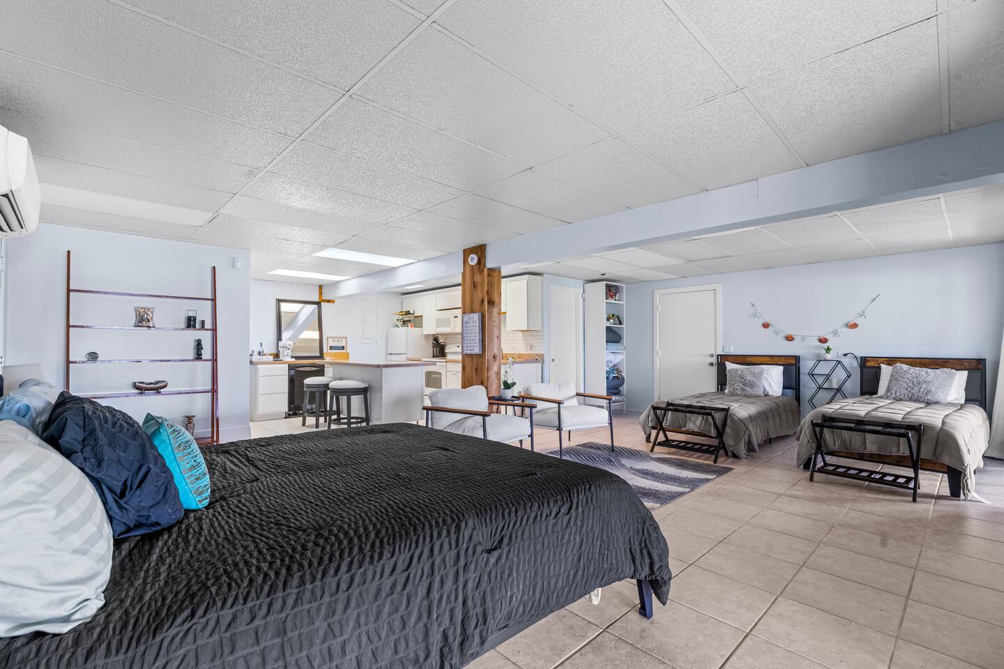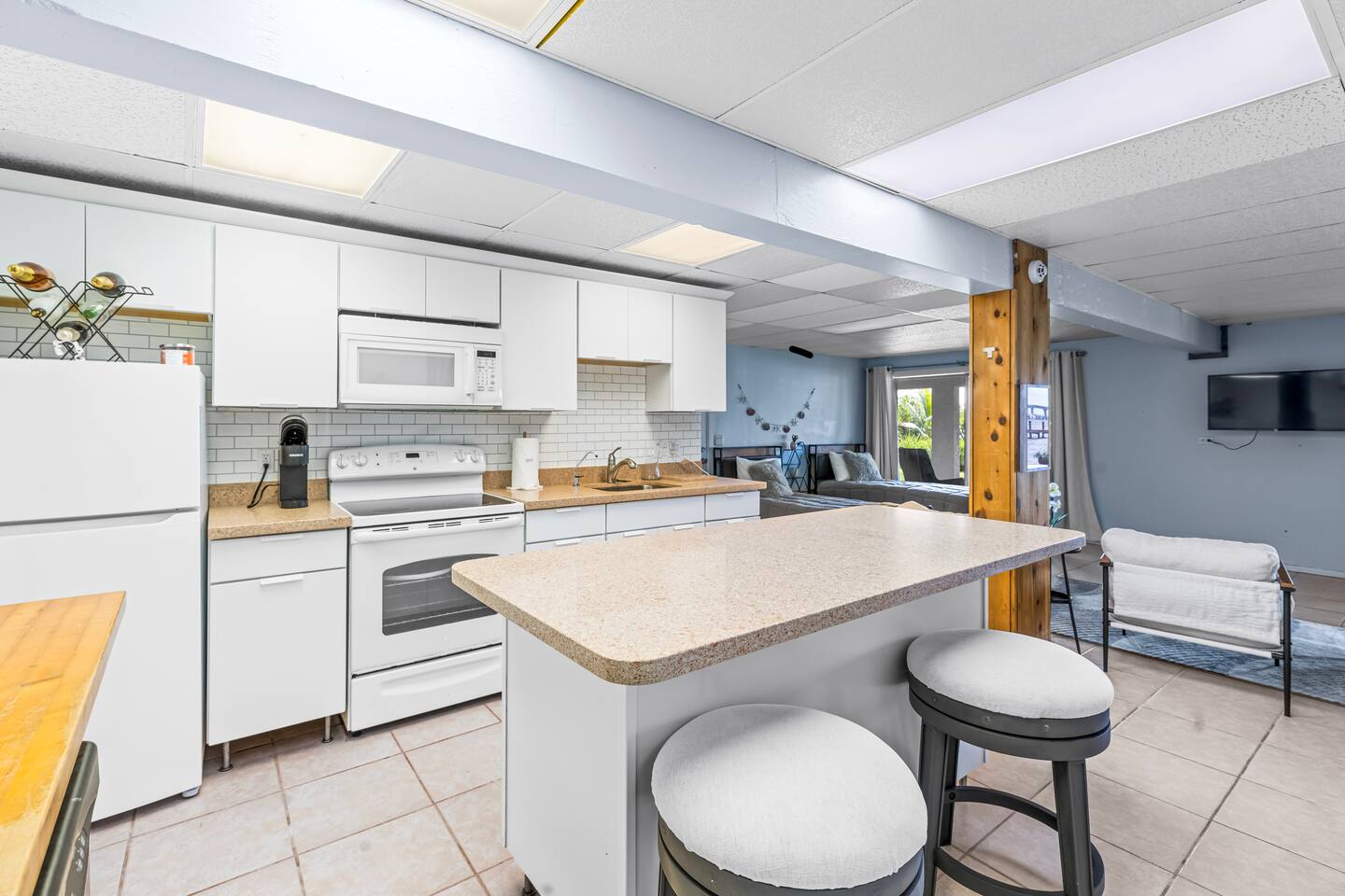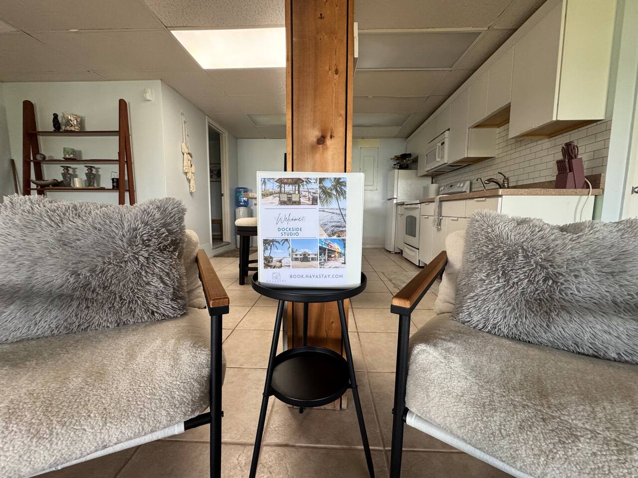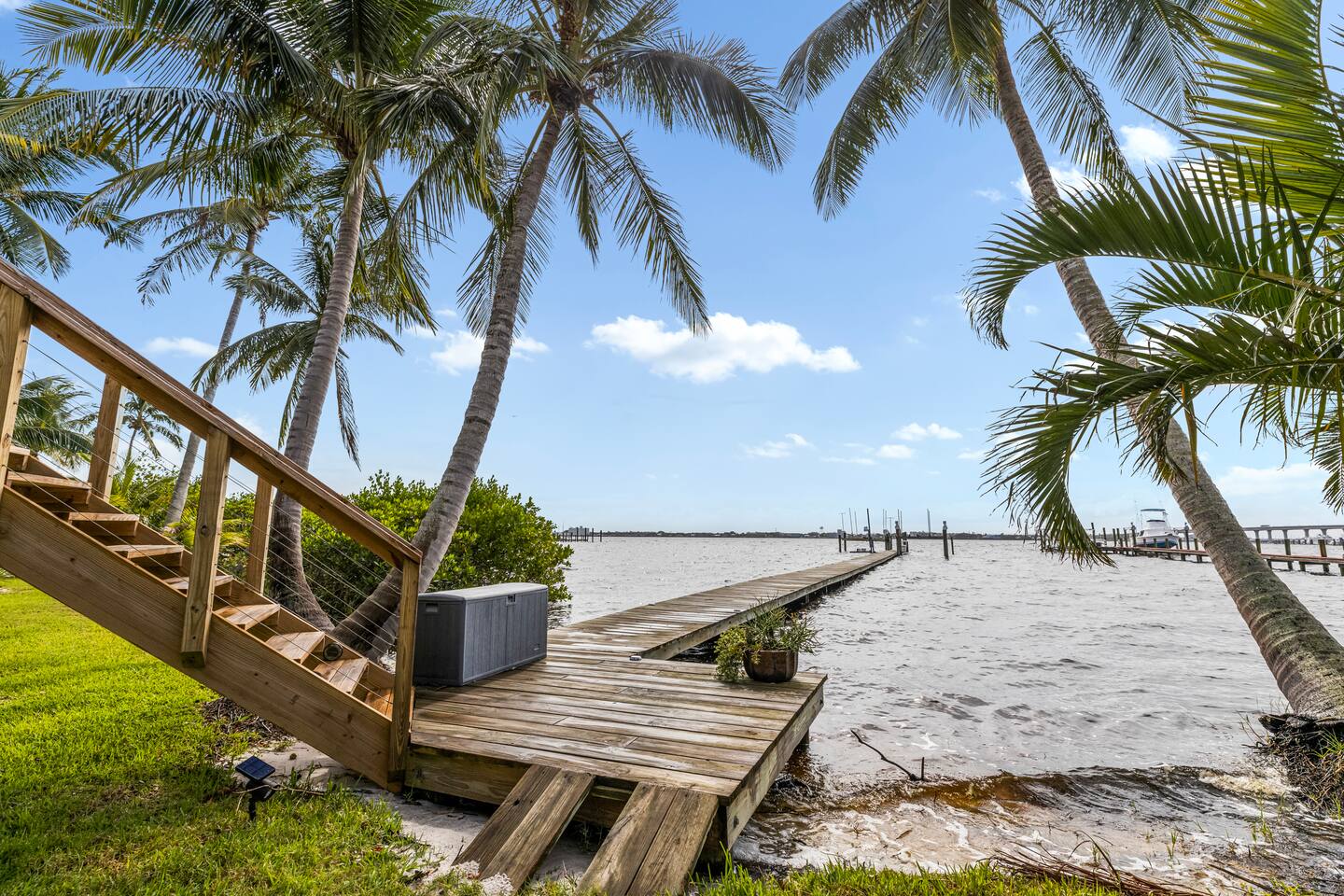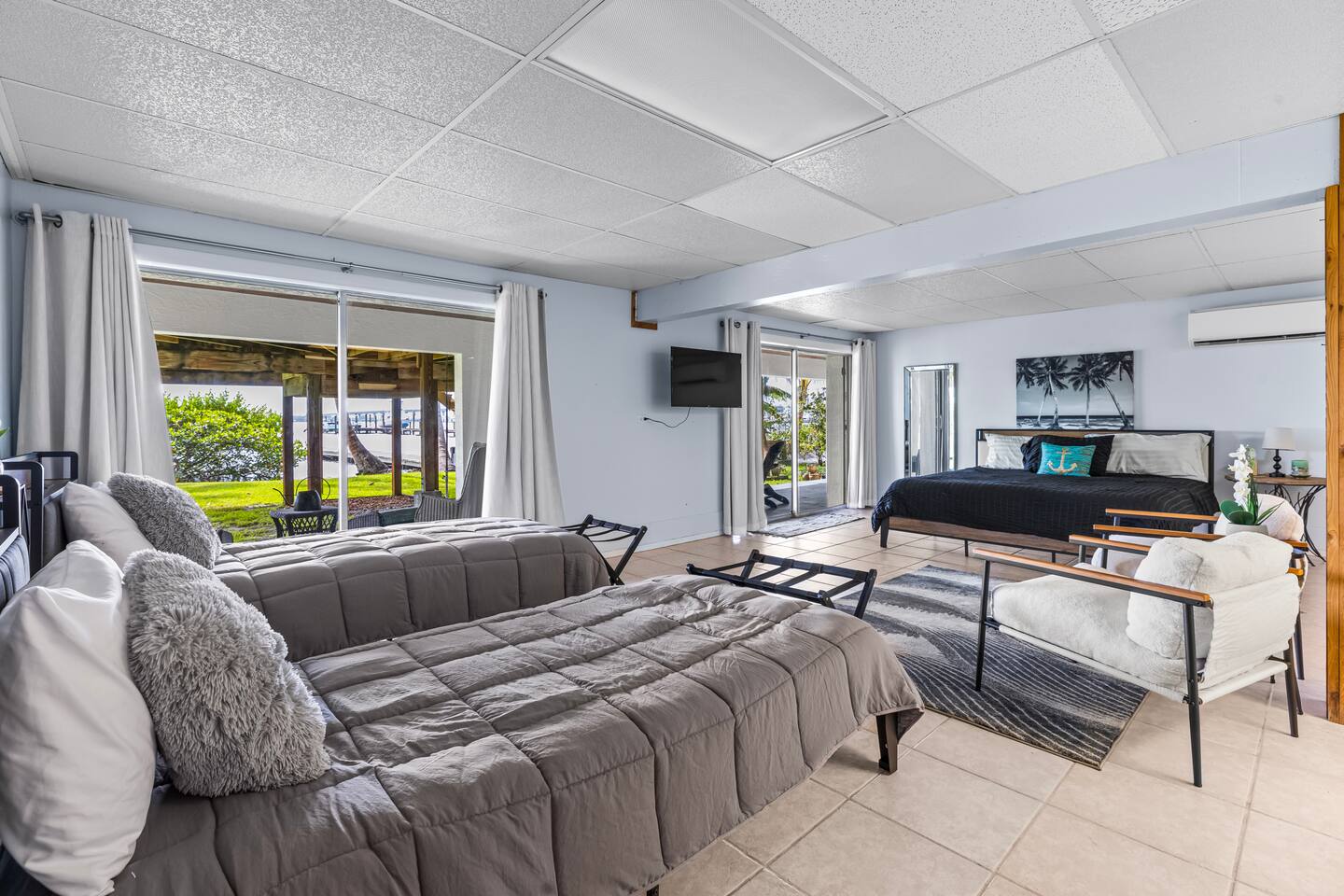 Welcome to our cozy waterfront studio in Jensen Beach! Enjoy a king bed, two twin beds, a seating area, bathroom, and a fully equipped kitchen. With dock access, it’s perfect for boating, fishing, or simply relaxing by the water.