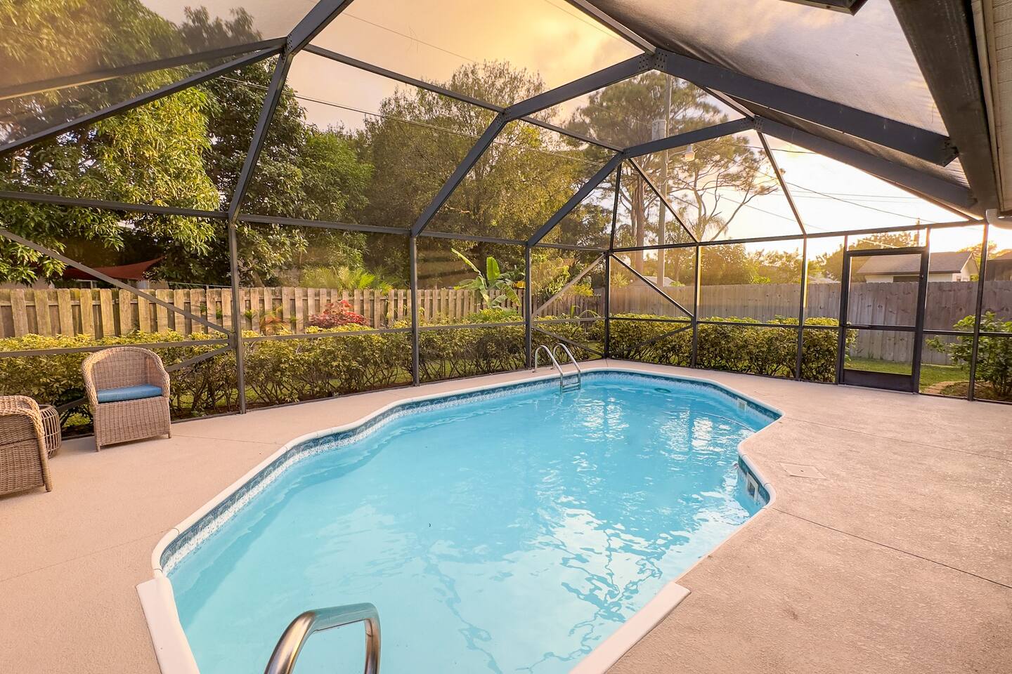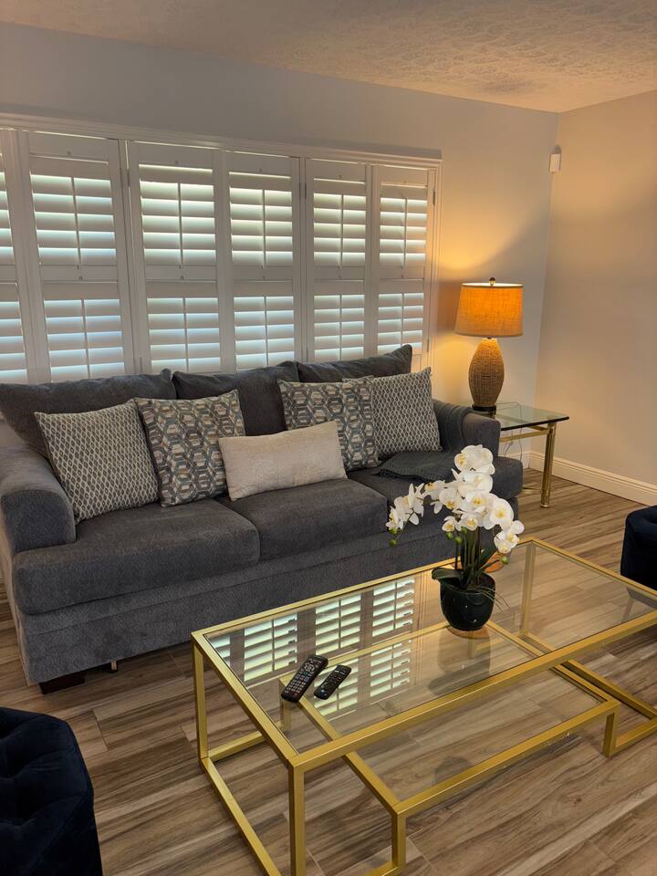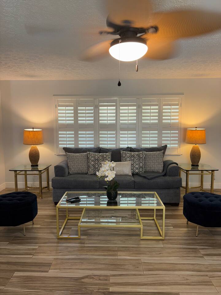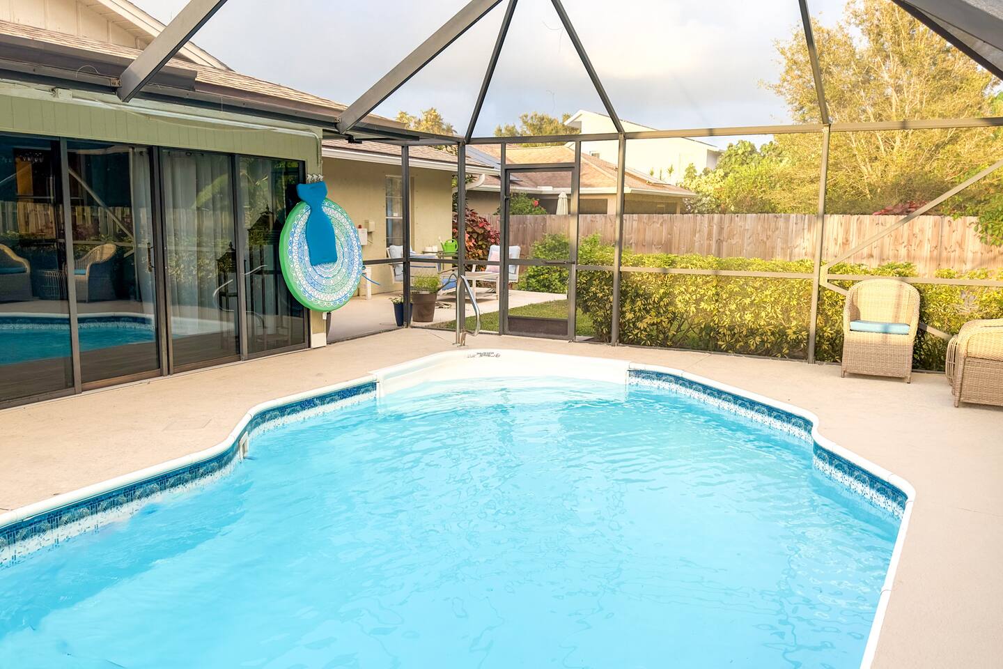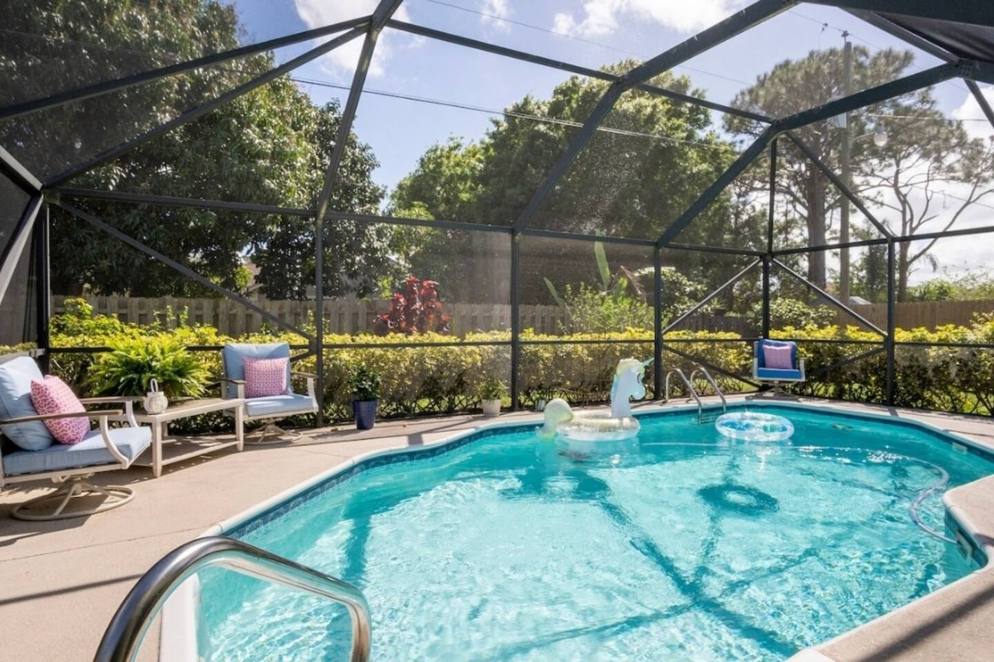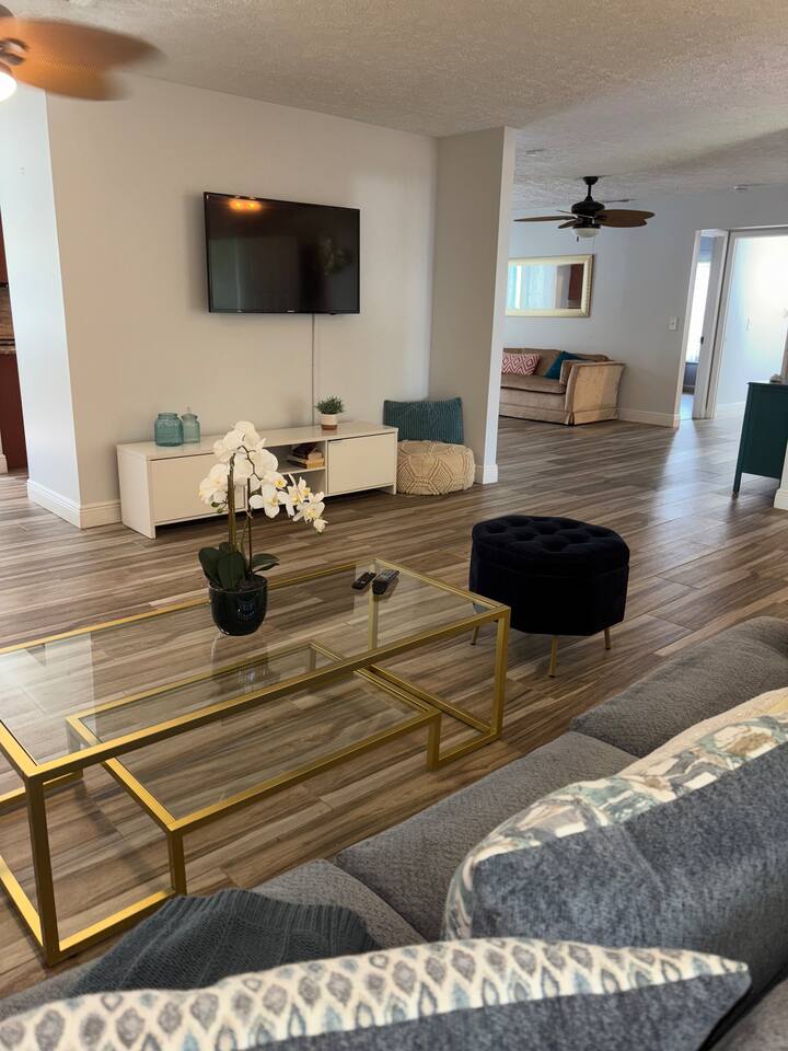 **Key Features of Your Dream Getaway** **Indoor Highlights** ✦ Spacious and thoughtfully designed home for ultimate comfort ✦ Conveniently located just 15 minutes from Jensen Beach Park ✦ Cozy family room with a large TV for entertainment ✦ 3 beautifully furnished bedrooms with sleeping arrangements for up to 12 guests ✦ Spacious master suite with a private en-suite bathroom. **Outdoor Highlights** ✦ Private screened-in heated pool for year-round enjoyment ✦ Multiple patio seating areas for relaxation and dining ✦ Close to the beach, mall and fantastic local dining options **Family-Friendly and Fully Equipped** ✔ High-speed internet for streaming and remote work ✔ Convenient on site laundry ✔ Close to shopping centers for groceries, souvenirs, and essentials ✔ Professional cleaning and maintenance for a spotless stay ✔ Local recommendations to explore the area like a pro ✔ Safe and secure neighborhood ✔ Eco-friendly amenities for a sustainable experience ✔ Pet-friendly accommodations Sleeping Arrangements: Master bedroom: One king bed (Sleeps 2) Bedroom 2: Queen Bunk Bed (Sleeps 4) Bedroom 3: Queen Bunk Bed (Sleeps 4) Living Room: Sleeper Sofa (Sleeps 2) **Important Note: No Parties Allowed** Garage is locked and not usable. Make lasting memories in this exceptional home—perfect for families, friends, and those seeking a relaxing retreat! GUEST RENTAL AGREEMENT, SECURITY DEPOSIT, & ID VERIFICATION REQUIRED All guests must complete a Guest Rental Agreement, ID verification, and Security Deposit in order to receive Arrival Instructions. Details of the Guest Rental Agreement can be found in the House Rules. Guests will have the option of a refundable credit card hold or a non-refundable $50 guest insurance.