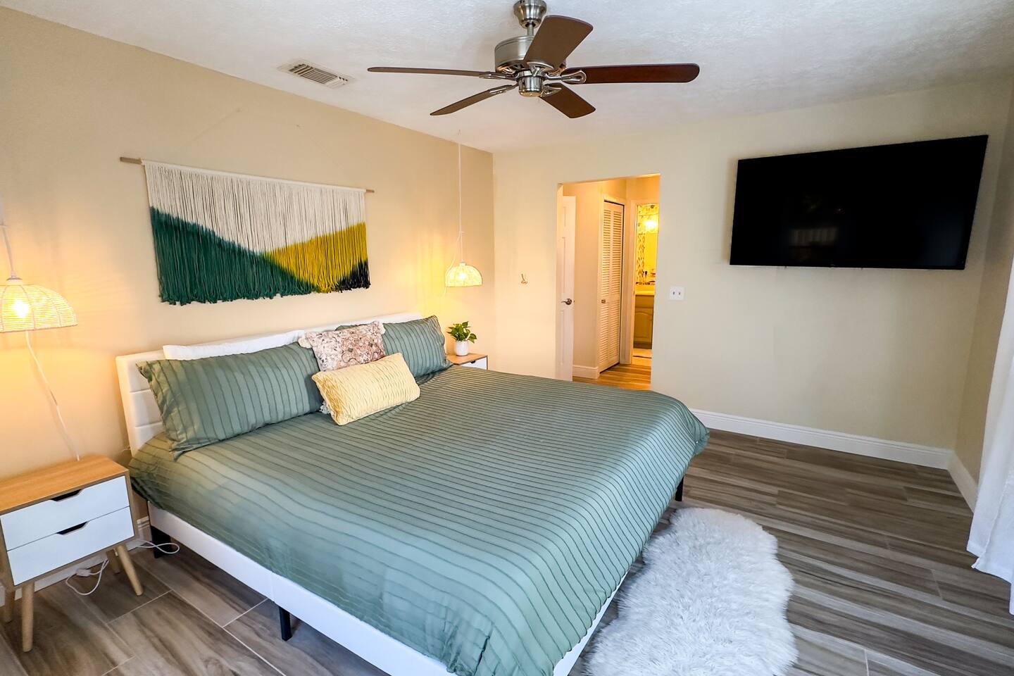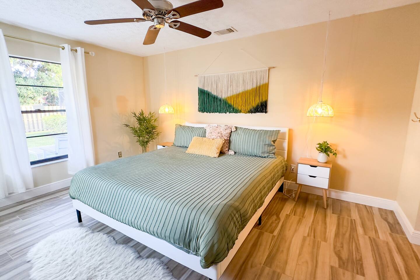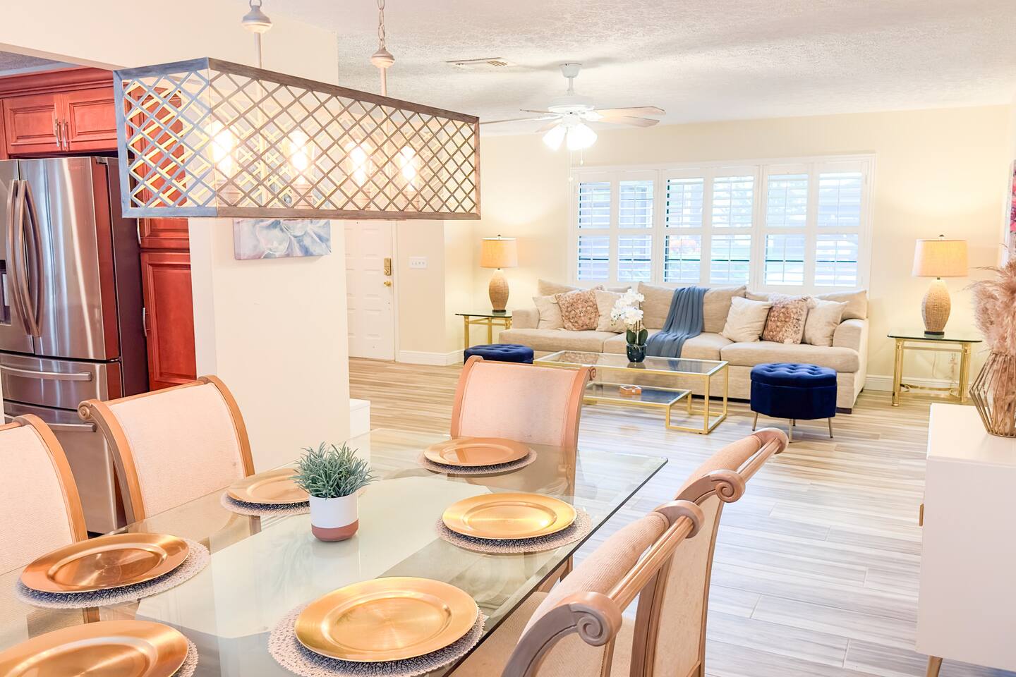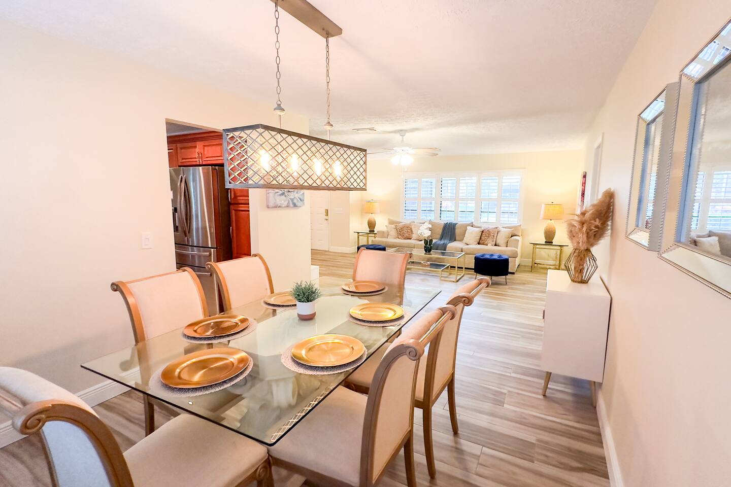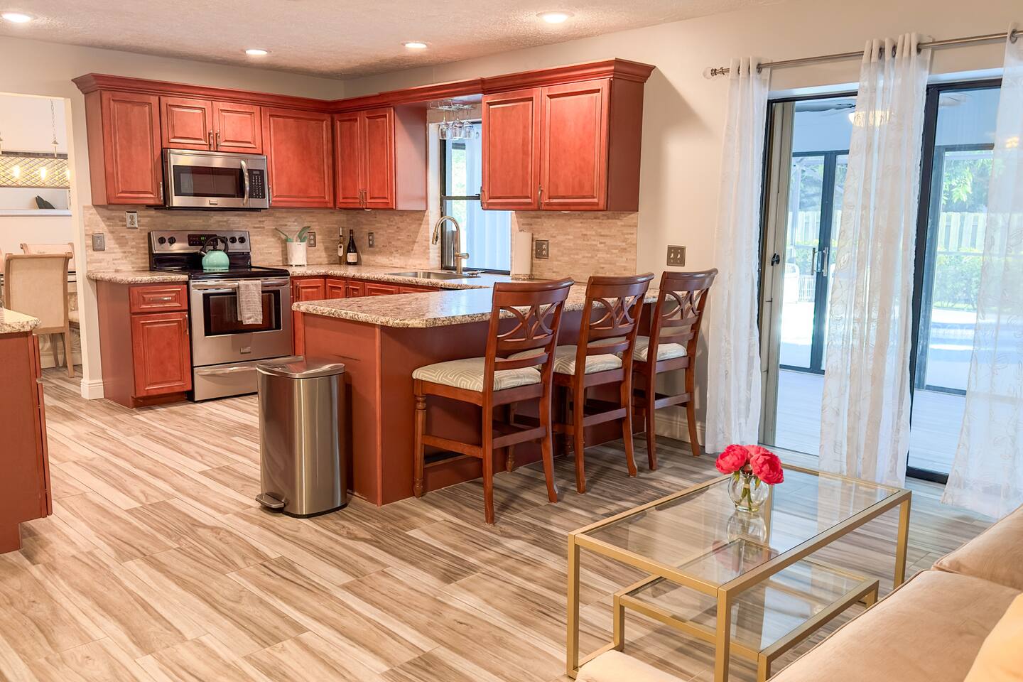 **Key Features of Your Dream Getaway** **Indoor Highlights** ✦ Spacious and thoughtfully designed home for ultimate comfort ✦ Conveniently located just 15 minutes from Jensen Beach Park ✦ Cozy family room with a large TV for entertainment ✦ 3 beautifully furnished bedrooms with sleeping arrangements for up to 12 guests ✦ Spacious master suite with a private en-suite bathroom. **Outdoor Highlights** ✦ Private screened-in heated pool for year-round enjoyment ✦ Multiple patio seating areas for relaxation and dining ✦ Close to the beach, mall and fantastic local dining options **Family-Friendly and Fully Equipped** ✔ High-speed internet for streaming and remote work ✔ Convenient on site laundry ✔ Close to shopping centers for groceries, souvenirs, and essentials ✔ Professional cleaning and maintenance for a spotless stay ✔ Local recommendations to explore the area like a pro ✔ Safe and secure neighborhood ✔ Eco-friendly amenities for a sustainable experience ✔ Pet-friendly accommodations Sleeping Arrangements: Master bedroom: One king bed (Sleeps 2) Bedroom 2: Queen Bunk Bed (Sleeps 4) Bedroom 3: Queen Bunk Bed (Sleeps 4) Living Room: Sleeper Sofa (Sleeps 2) **Important Note: No Parties Allowed** Garage is locked and not usable. Make lasting memories in this exceptional home—perfect for families, friends, and those seeking a relaxing retreat! GUEST RENTAL AGREEMENT, SECURITY DEPOSIT, & ID VERIFICATION REQUIRED All guests must complete a Guest Rental Agreement, ID verification, and Security Deposit in order to receive Arrival Instructions. Details of the Guest Rental Agreement can be found in the House Rules. Guests will have the option of a refundable credit card hold or a non-refundable $50 guest insurance.