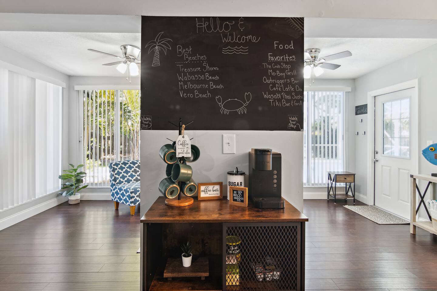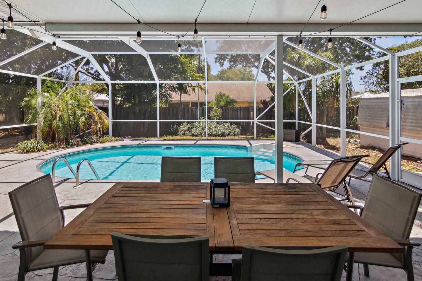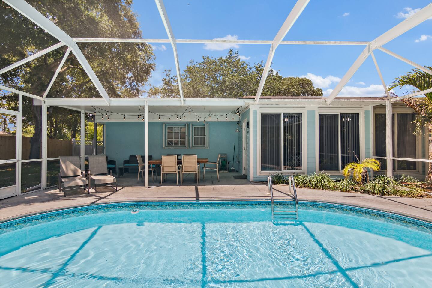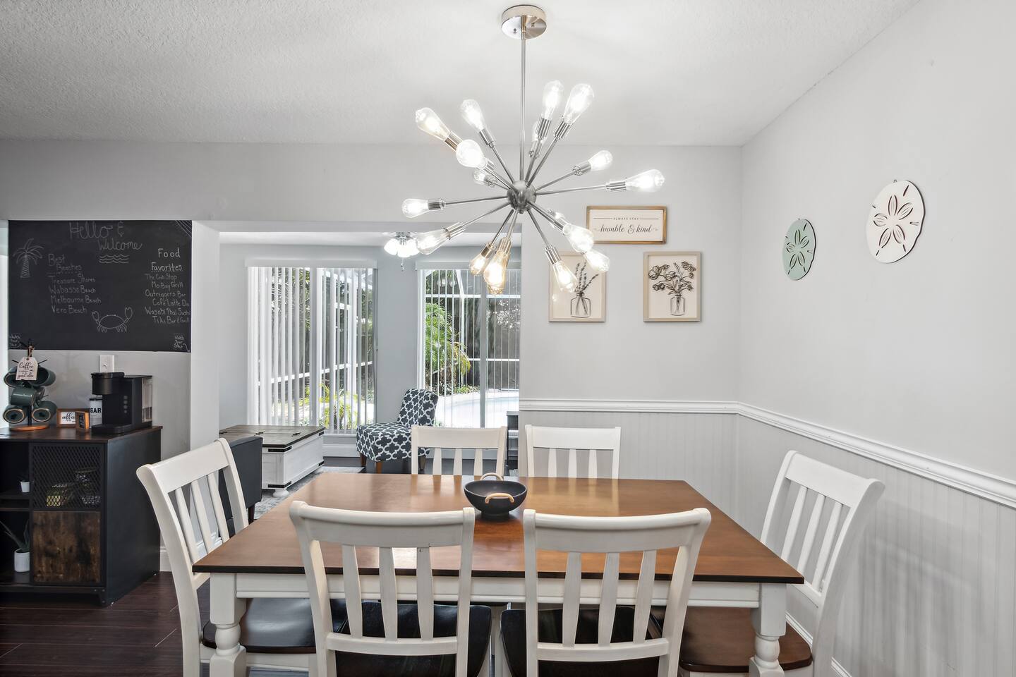***Serene Paradise~ just minutes from boat launch, Ocean, and River*** This home is positioned right next to the Indian River Lagoon! Very close to boat launches and water activities. Our home features a King Master Suite with private shower. There are two other bedrooms with a shared Bath, a large open Kitchen, pool view living room, a pool view family lounge, & a very nice dining area and coffee/tea bar. This private split floor plan is perfect for multi-family/couples arrangements!