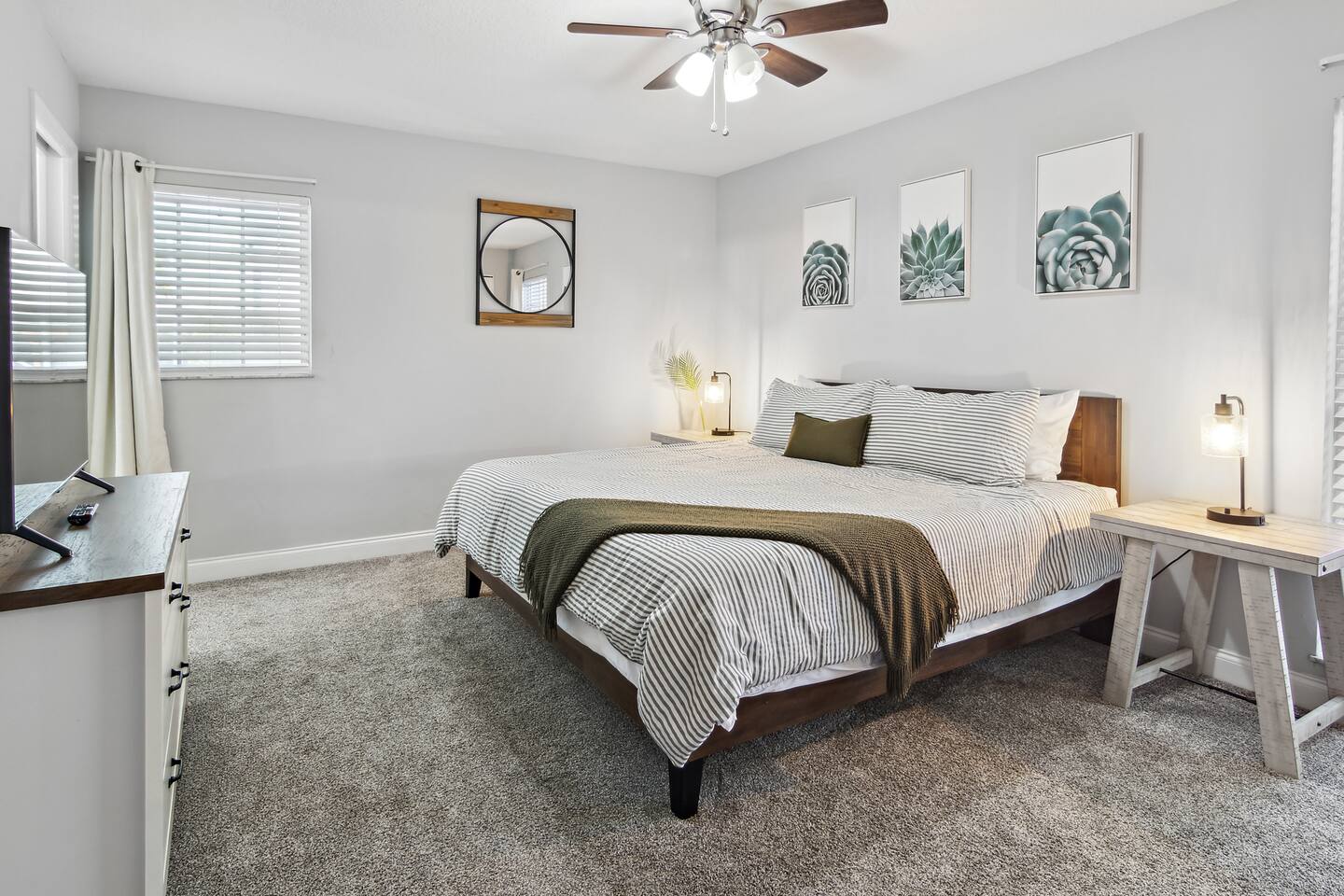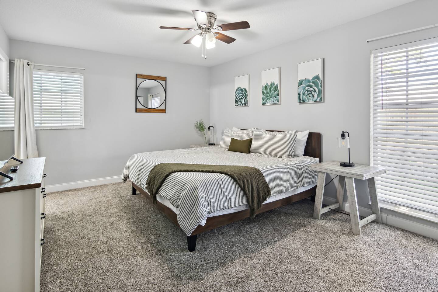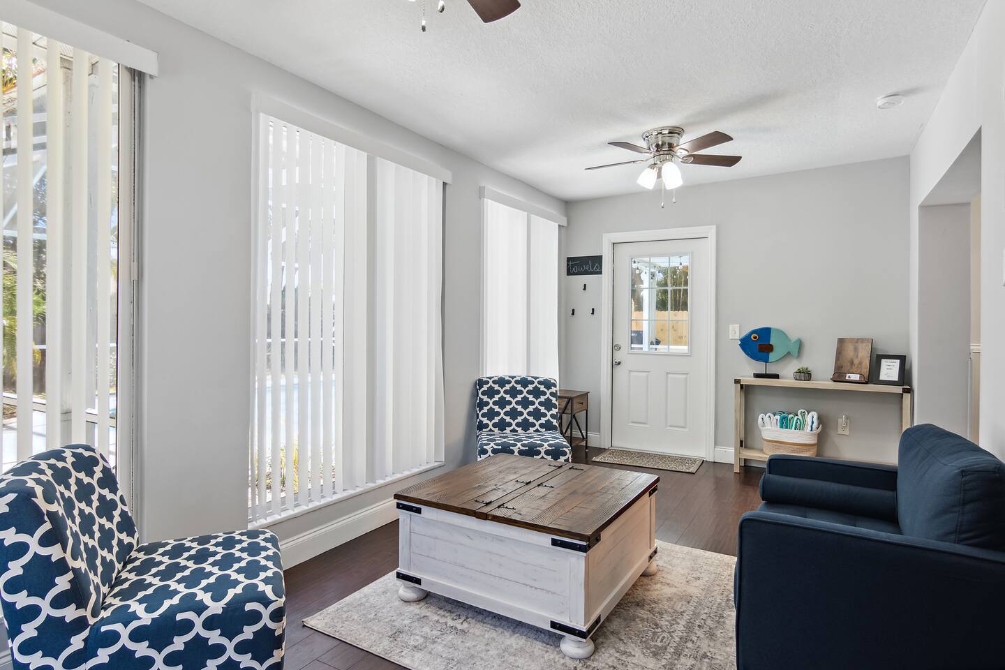 Welcome to Paradise Bliss, your serene retreat in Sebastian, Florida. This spacious 3-bedroom, 2-bathroom home comfortably accommodates up to 6 guests, making it perfect for families or groups seeking relaxation and adventure. Highlights: Heated Pool: Enjoy year-round swimming in your private heated pool, surrounded by a screened patio ideal for sunbathing or evening gatherings. Proximity to Water Activities: Located just minutes from a convenient boat ramp, it's easy to launch into the Indian River for boating, fishing, or kayaking adventures. The beautiful local beaches are also a short drive away, offering sun, sand, and surf. Comfortable Living Spaces: The open-concept living area features cozy seating and a flat-screen TV, perfect for unwinding after a day of exploration. Stay connected with complimentary high-speed Wi-Fi. Fully Equipped Kitchen: Prepare meals with ease in the well-appointed kitchen, complete with modern appliances, ample counter space, and a dining area for shared meals. Outdoor Dining: Take advantage of the outdoor dining area and gas grill for delightful poolside barbecues. Nearby Attractions: Explore the charming town of Sebastian, known for its waterfront dining, local shops, and parks. Don't miss the nearby Pelican Island National Wildlife Refuge and the Sebastian Inlet State Park for nature excursions. Experience the perfect blend of comfort and convenience at Paradise Bliss, where your memorable Florida getaway awaits. Sleeping Arrangements: Master Bedroom 1 King Bed Ensuite Bathroom Bedroom Two 1 Queen Bed Bedroom Three 2 Twin Beds GUEST RENTAL AGREEMENT, SECURITY DEPOSIT, & ID VERIFICATION REQUIRED All guests must complete a Guest Rental Agreement, ID verification, and Security Deposit in order to receive Arrival Instructions. Details of the Guest Rental Agreement can be found in the House Rules.