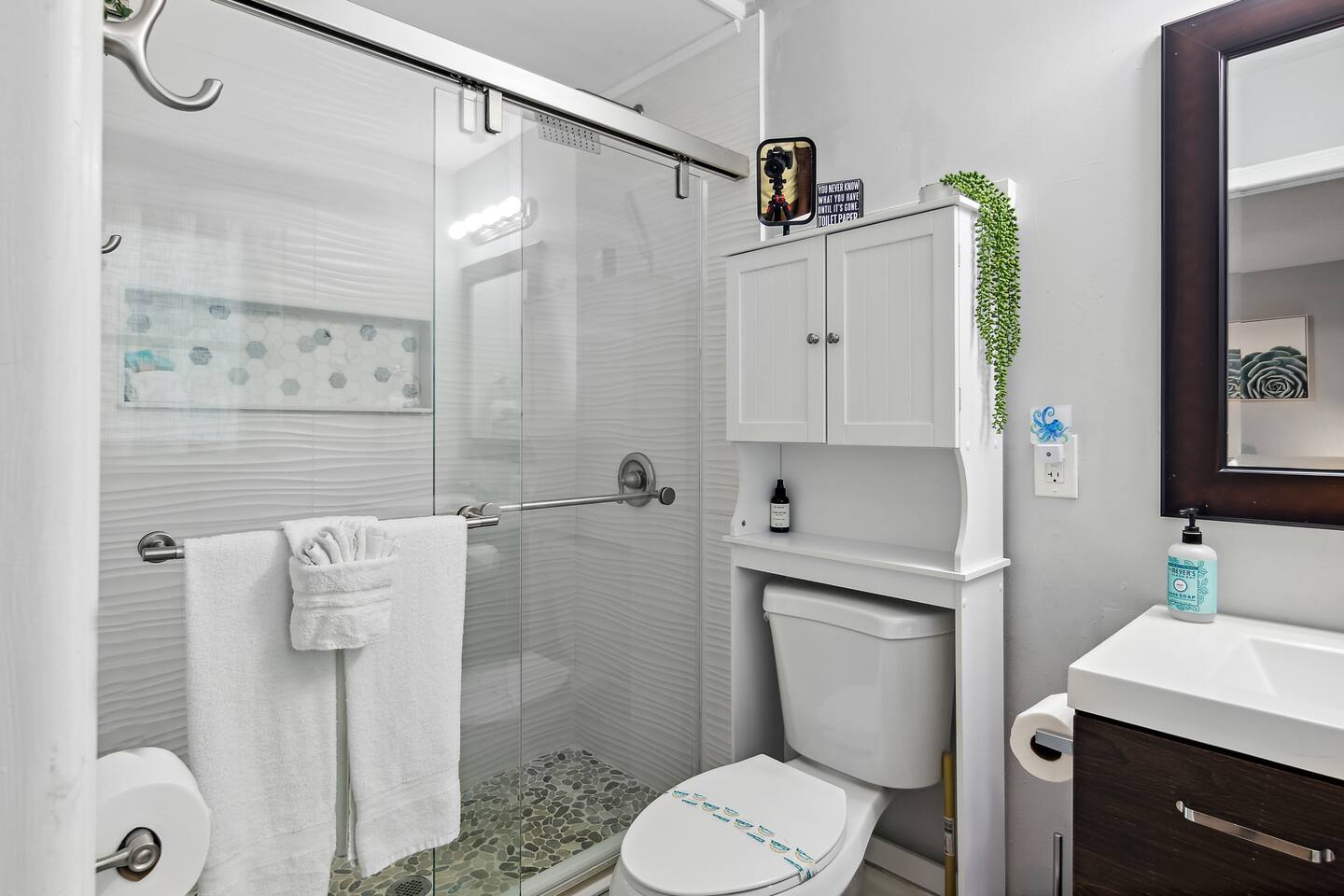 STARTER KIT The home will be prepared for your comfort and enjoyment upon your arrival. As is customary for vacation rentals, and as a courtesy to you, we will provide these items to get your trip off to a comfortable start; however, any additional supplies will be your responsibility. • 2 Toilet paper per bathroom • 1 Small shampoo/conditioner per bathroom • 1 Soap per bathroom • 1 Hand soap per bathroom • 2 Trash bags • 1 Dish soap • 1 Sponge • 3 Dishwasher pod • 1 Paper towel • Coffee • Sugar • 3 Laundry Pods *A Navastay Vacation Rental Property*