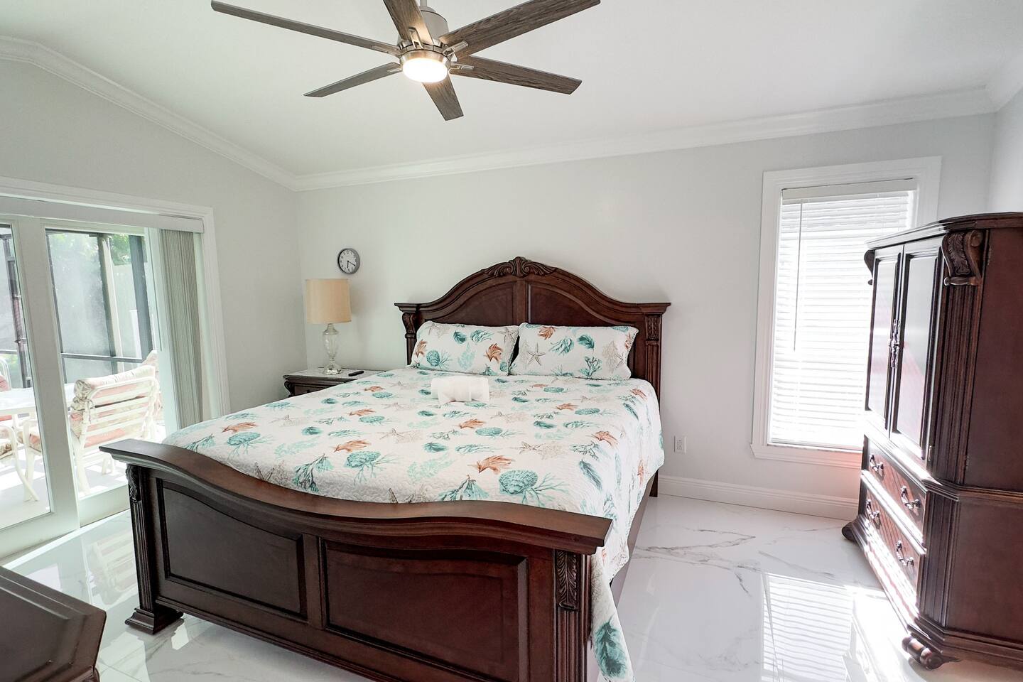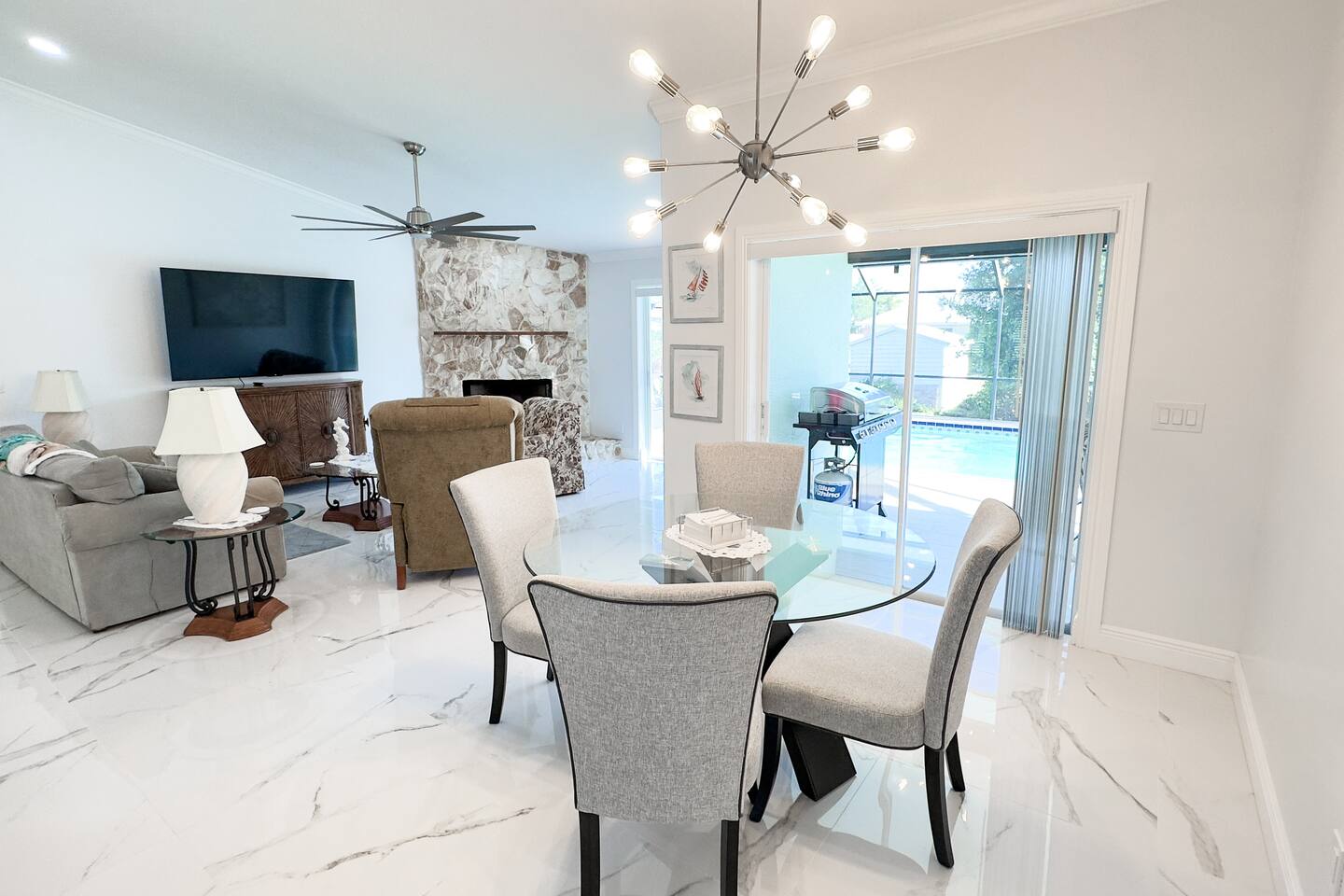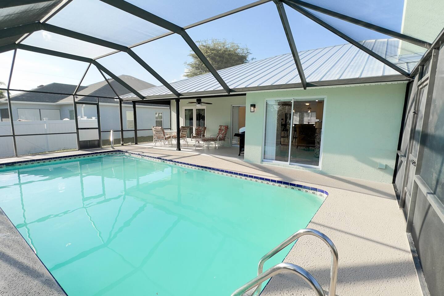 Welcome to our newly renovated and beautifully appointed home located in the charming town of Sebastian, Florida. This stunning 3-bedroom, 2-bathroom property has been thoughtfully designed with your comfort and relaxation in mind. As you step inside, you'll be greeted by a spacious and bright living area, complete with plush furnishings and modern decor. The fully equipped kitchen boasts top-of-the-line appliances and everything you'll need to prepare a delicious meal. The living room features a sleeper sofa. And when it's time to wind down, the luxurious master bedroom features a comfortable king-sized bed, a flat-screen TV, and a spa-like en-suite bathroom with a whirlpool tub and a rain walk-in shower. The second and third bedrooms are equally inviting, with a queen-sized bed, ample storage space, and easy access to a full bathroom. Plus, there's even an office space with a desk and chair in one of the guest bedrooms. Take a dip in the private heated pool or simply relax on the sun loungers while soaking up the Florida sunshine. Located just a short drive from the beach, this vacation rental is perfectly situated to enjoy all that Sebastian and the surrounding area have to offer. Whether you're looking for outdoor adventure, world-class dining, or simply a quiet getaway, this home has it all. Book now for an unforgettable Florida vacation! Sleeping Arrangements: Master bedroom 1 King sized bed Second Bedroom 1 Queen sized bed Third Bedroom 1 Queen sized bed Living Room Sofa bed GUEST RENTAL AGREEMENT, SECURITY DEPOSIT, & ID VERIFICATION REQUIRED All guests must complete a Guest Rental Agreement, ID verification, and Security Deposit in order to receive Arrival Instructions. Details of the Guest Rental Agreement can be found in the House Rules.