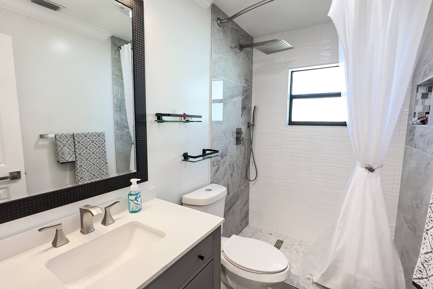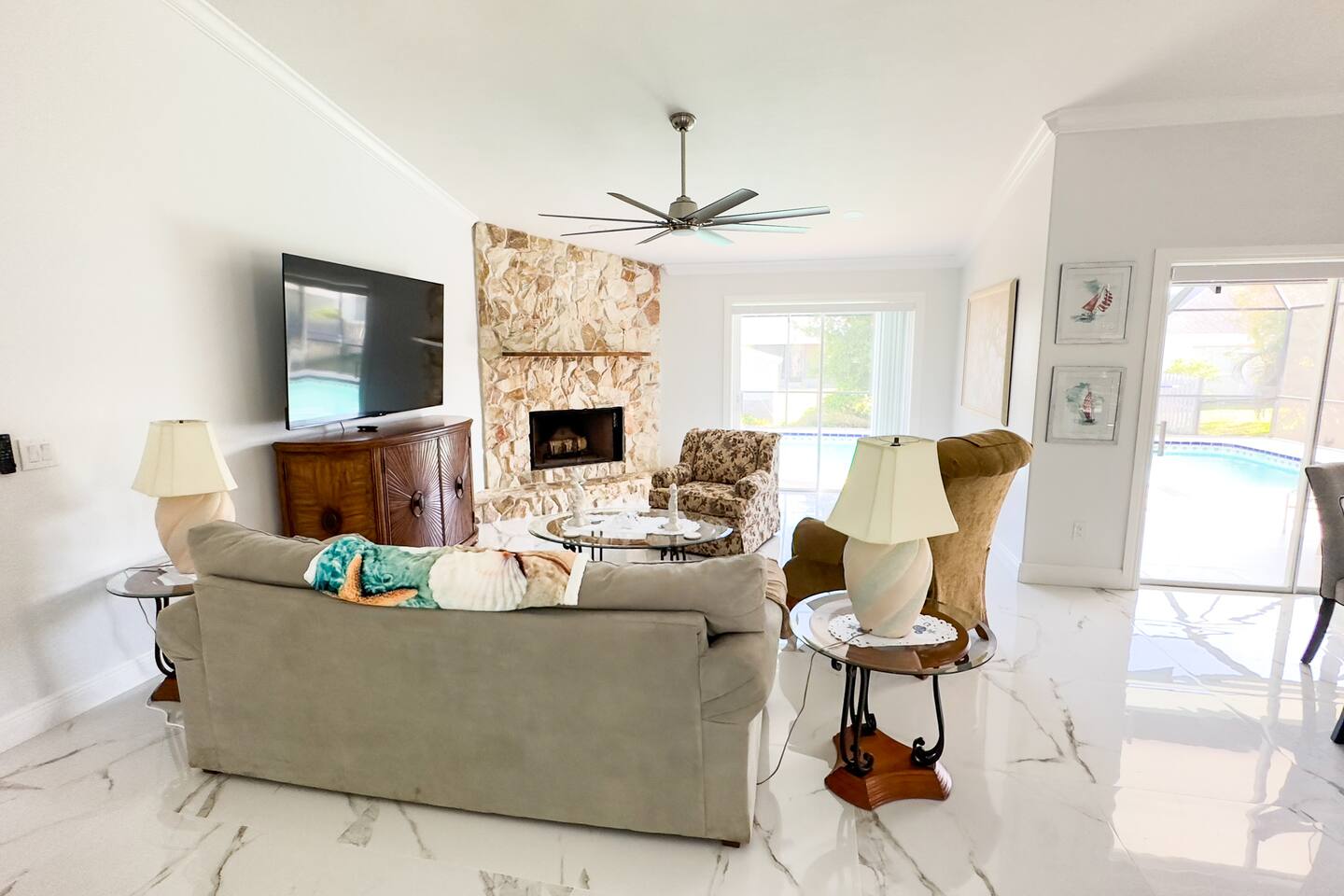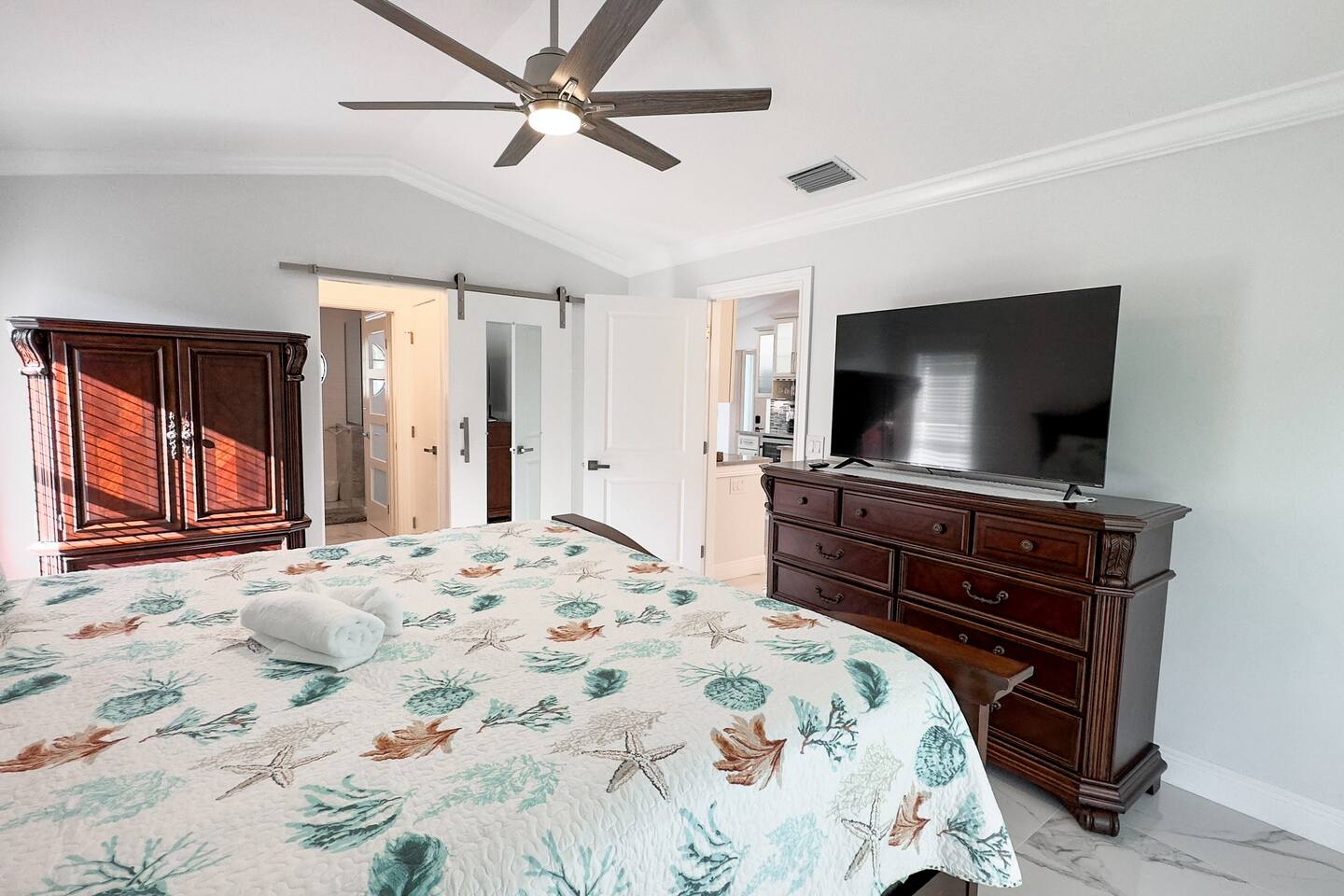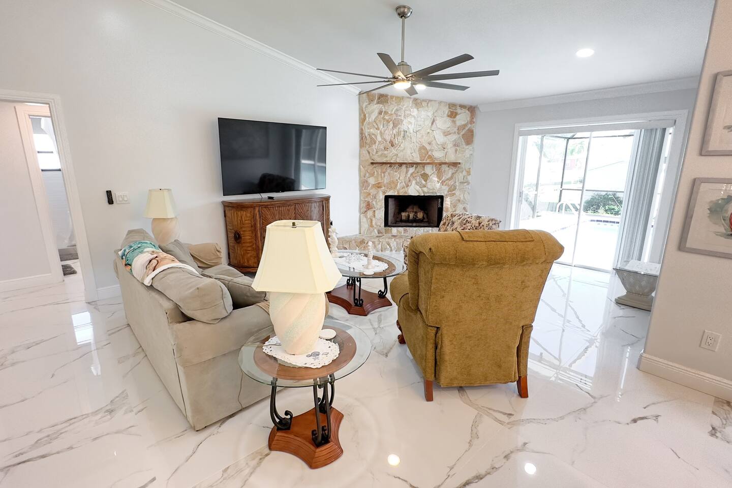 Welcome to our newly renovated and beautifully appointed home located in the charming town of Sebastian, Florida. This stunning 3-bedroom, 2-bathroom property has been thoughtfully designed with your comfort and relaxation in mind. As you step inside, you'll be greeted by a spacious and bright living area, complete with plush furnishings and modern decor. The fully equipped kitchen boasts top-of-the-line appliances and everything you'll need to prepare a delicious meal. The living room features a sleeper sofa. And when it's time to wind down, the luxurious master bedroom features a comfortable king-sized bed, a flat-screen TV, and a spa-like en-suite bathroom with a whirlpool tub and a rain walk-in shower. The second and third bedrooms are equally inviting, with a queen-sized bed, ample storage space, and easy access to a full bathroom. Plus, there's even an office space with a desk and chair in one of the guest bedrooms. Take a dip in the private heated pool or simply relax on the sun loungers while soaking up the Florida sunshine. Located just a short drive from the beach, this vacation rental is perfectly situated to enjoy all that Sebastian and the surrounding area have to offer. Whether you're looking for outdoor adventure, world-class dining, or simply a quiet getaway, this home has it all. Book now for an unforgettable Florida vacation! Sleeping Arrangements: Master bedroom 1 King sized bed Second Bedroom 1 Queen sized bed Third Bedroom 1 Queen sized bed Living Room Sofa bed GUEST RENTAL AGREEMENT, SECURITY DEPOSIT, & ID VERIFICATION REQUIRED All guests must complete a Guest Rental Agreement, ID verification, and Security Deposit in order to receive Arrival Instructions. Details of the Guest Rental Agreement can be found in the House Rules.